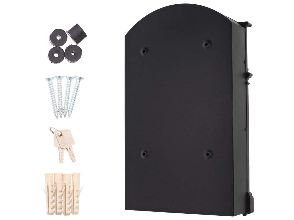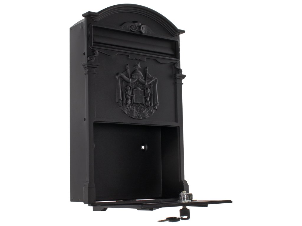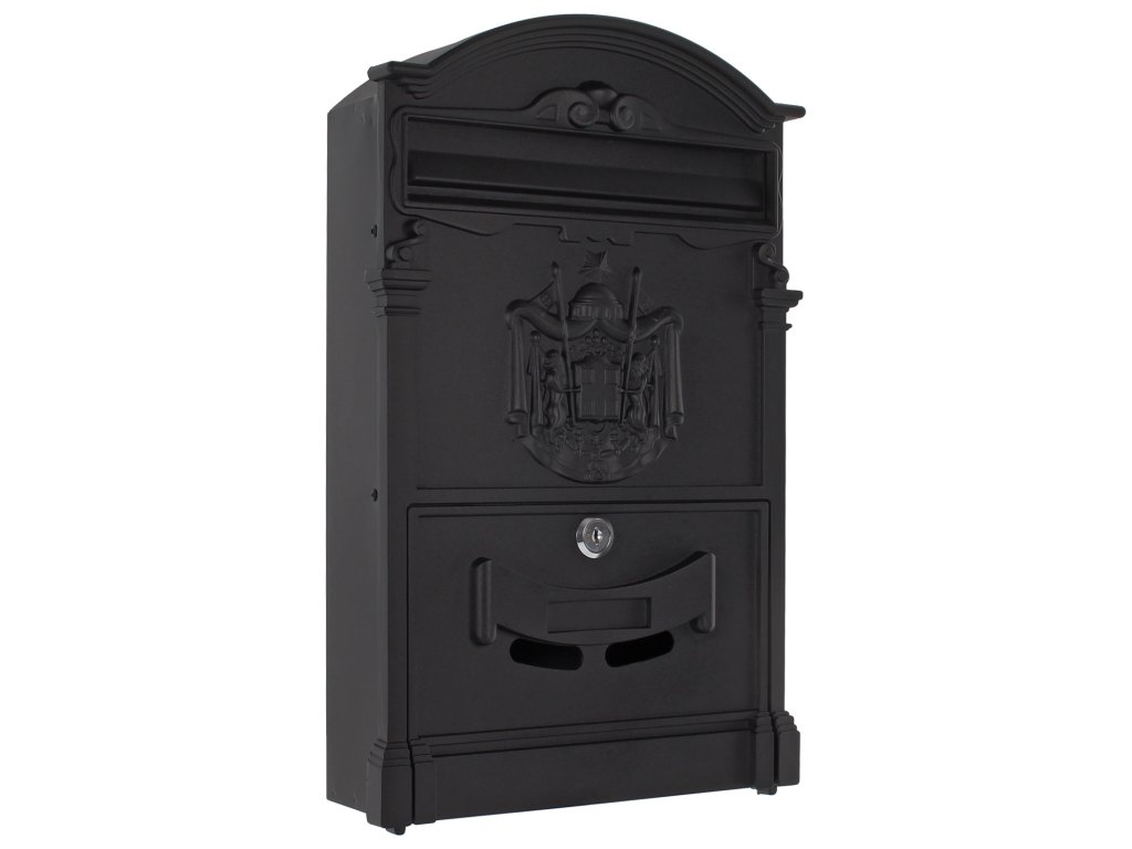Hlavní výhody: Cylindrický zámek se 2 klíči Přední vhod na poštu rozměrů max. A4 Jmenovka Odolnost proti povětrnostním vlivům Antracitová poštovní schránka s designem evokujícím historické časy se skvěle hodí všem milovníkům staršího designu. V přední části je vylisován historický erb spolu s množstvím okrasných dekorací po celé schránce. Poštu vám pošťák vhodí přes přední vhoz a vy si ji jednoduše a pohodlně vyberete přes velké spodní dvířka. Ty se zamykají klasickým cylindrickým zámkem. Na zadní straně jsou připraveny otvory pro snadné a rychlé upevnění. Materiál k upevnění je součástí dodávky.Doplňkové parametry