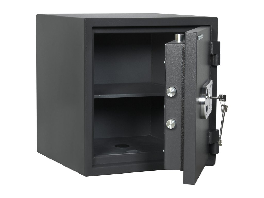 Certifikovaný trezorový zámek Bezpečnostní třída I (ČSN EN 1143-1) Ohnivzdornost po dobu 30 minut Polička uvnitř