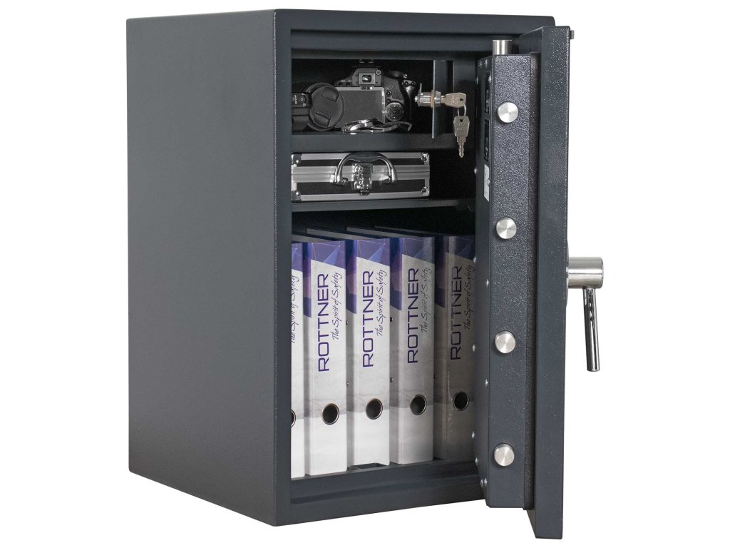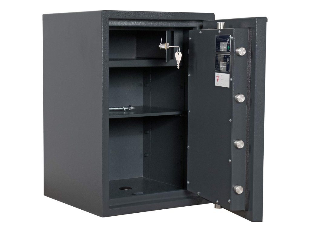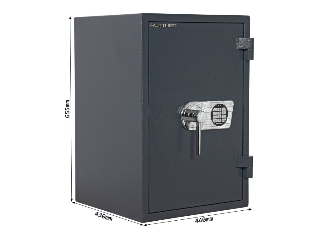 Hlavní výhody: Certifikovaný elektronický zámek Bezpečnostní třída I (ČSN EN 1143-1) Odolnost proti ohni až do 30 minut Možnost úschovy zbraní a střeliva podle č.190 / 2003 Sb. z. 3 stranný uzamykací mechanismus Speciální betonová výplň mezi pláštěm trezoru Napájení 1 x 9V baterií (je součástí balení) Vnitřní schránka s cylindrickým zámkem a 2 klíči Nastavitelná polička uvnitř Otevření dveří až do 180 ° Otvory na ukotvení na spodní straně trezoru Certifikovaný trezor z modelové řady Atlas nabízí bezpečný elektronický zámek s bezpečnostní třídou I a možností uskladnění především dokumentů, krátkých zbraní a munice. Vhodný jak do domácnosti tak i do administrativních prostor. Všechny důležité dokumenty, šperky a jiné vzácné předměty ochrání po dobu 30 minut i proti ohni. Zároveň můžete využít i vnútornú schránku s výši 140 mm přímo uvnitř trezoru. Pokud odstraníte šrouby vnitřního trezoru, lze jej také vyjmout z hlavního trezoru. Pro lepší přístup do vnitřku trezoru je možné dveře otevřít až v úhlu 180 °. Pomocí přiloženého kotvícího materiálu lze trezor ukotviť do podlahy.Doplňkové parametry