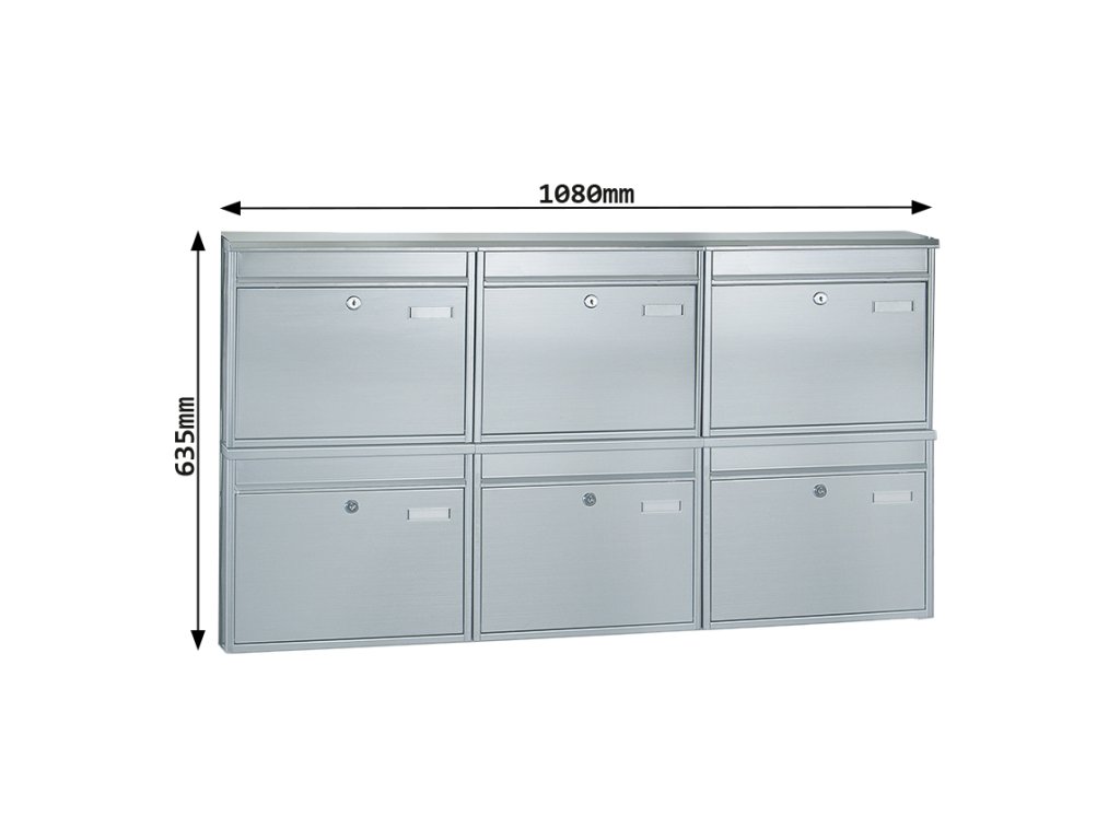 Hlavní výhody: Cylindrické zámky se 2 klíči Přední vhod pro poštu Odolnost proti povětrnostním vlivům a korozi Jmenovky Bez stojanu Celkově 6 poštovních stojanových schránek disponuje samostatným předním vhozovým otvorem pro každou schránku. Schránky mají klasický cylindrický zámek dodávaný spolu s 2 klíči. Poštovní schránky odolají povětrnostním vlivům a také korozi. Přední vhod každé schránky má krytku, aby dovnitř schránky nepronikla dešťová voda nebo jiné nečistoty. Každá ze šestice poštovních schránek má samostatnou jmenovku. Upozorňujeme, že poštovní schránky jsou dodávány bez stojanu, který lze samostatně dokoupit. Schránky jsou dodávány spolu s materiálem na upevnění.Doplňkové parametry
