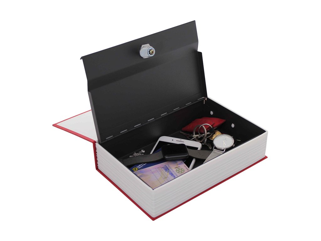 Hlavní výhody: Cylindrický zámek s 2 klíči Nenápadný design vhodný i na cestování Kvalitní pozinkovaná ocel Elegantní červená kazeta na uchování cenných drobností v domácím prostředí. Ideálně se hodí mezi vaši sbírku knih, případně na poličku, kde skvěle zapadne. Vaše drobné tajemství tak nebudou na očích, i díky schovanému cylindrickému zámku. Úschovná kazeta je vhodná i na cestování.Doplňkové parametry