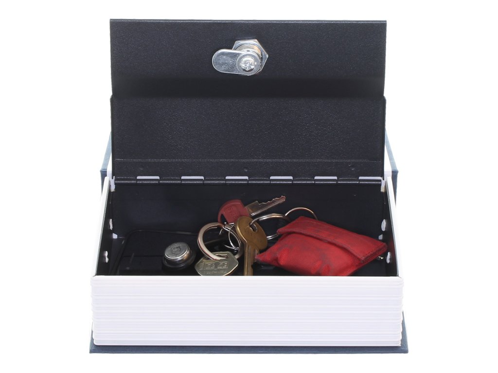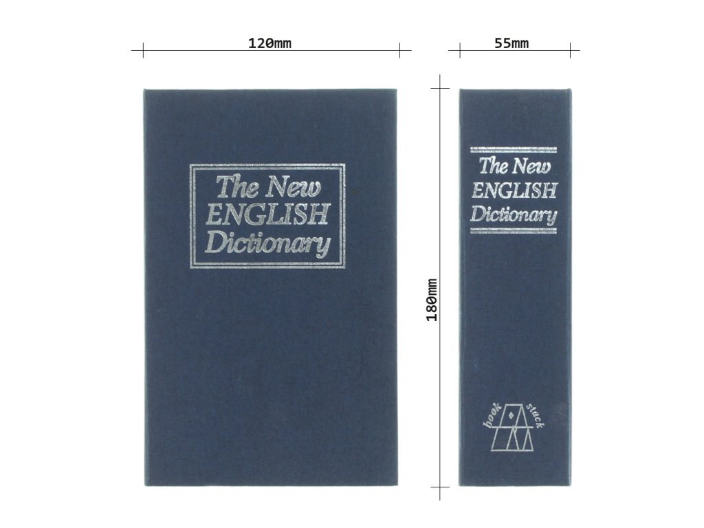 Hlavní výhody: Cylindrický zámek s 2 klíči Nenápadný design vhodný i na cestování Kvalitní pozinkovaná ocel Skvělá možnost na nenápadné uschování malého obnosu hotovosti nebo drobných šperků nebo cenností. Kazeta navenek vypadá jako klasická součást knihovny nebo jako klasický velký slovník cizích slov. Kvalitní ocelové provedení ale navenek evokuje klasickou knihu. Zajištění proti otevření je prostě západkou.Doplňkové parametry