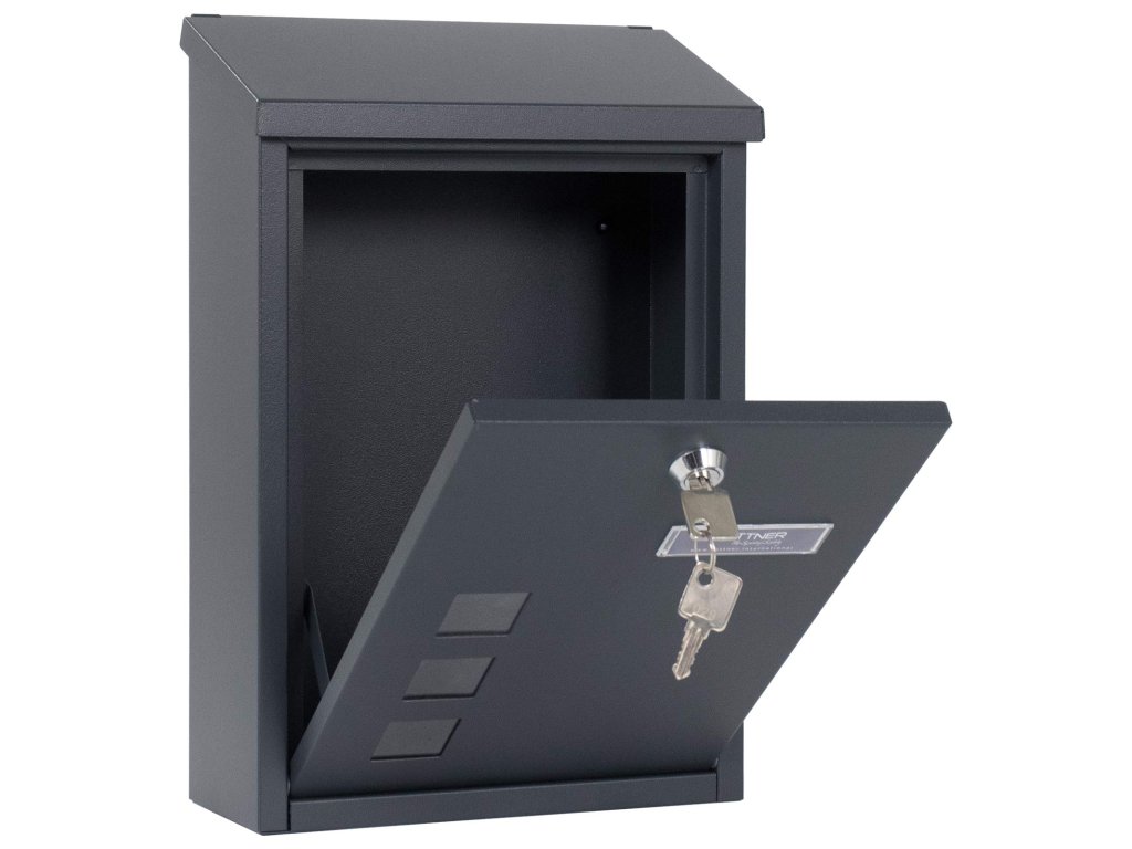 Hlavní výhody: Cylindrický zámek s 2 klíči Nerezová ocel odolná proti povětrnostním podmínkám Horní otvor pro vhod pošty velikosti A4 Otvor pro vhod pošty chráněný stříškou Jmenovka Klasický tvar poštovní schránky vyroben z nerezavějící oceli doplněn o tři malé okénka, které ukáží, ať už vaše pošta dorazila. Horní otvor pro vhazování pošty je akorát pro poštu do velikosti A4. Zároveň je krytý stříškou, která zabrání nežádoucímu vnikání vody a nešistôt do schránky. Samozřejmostí je jmenovka spolu s přiloženým upevňovacím materiálem, abyste si mohli schránku hned po obdržení přimontovat na stěnu.Doplňkové parametry