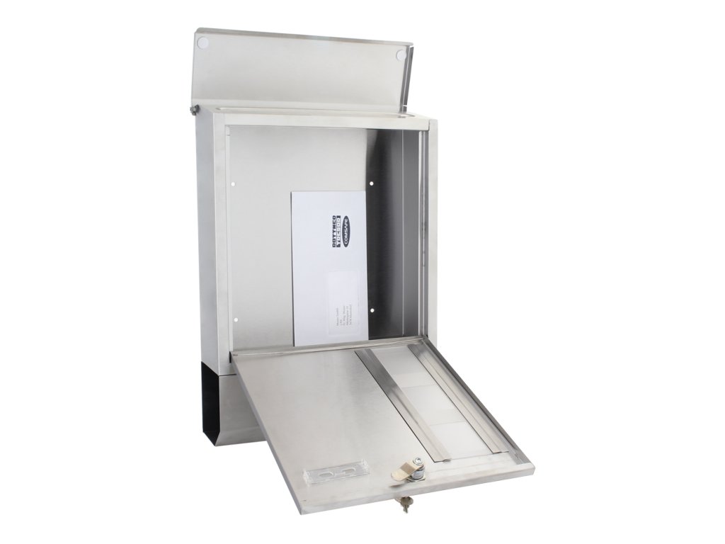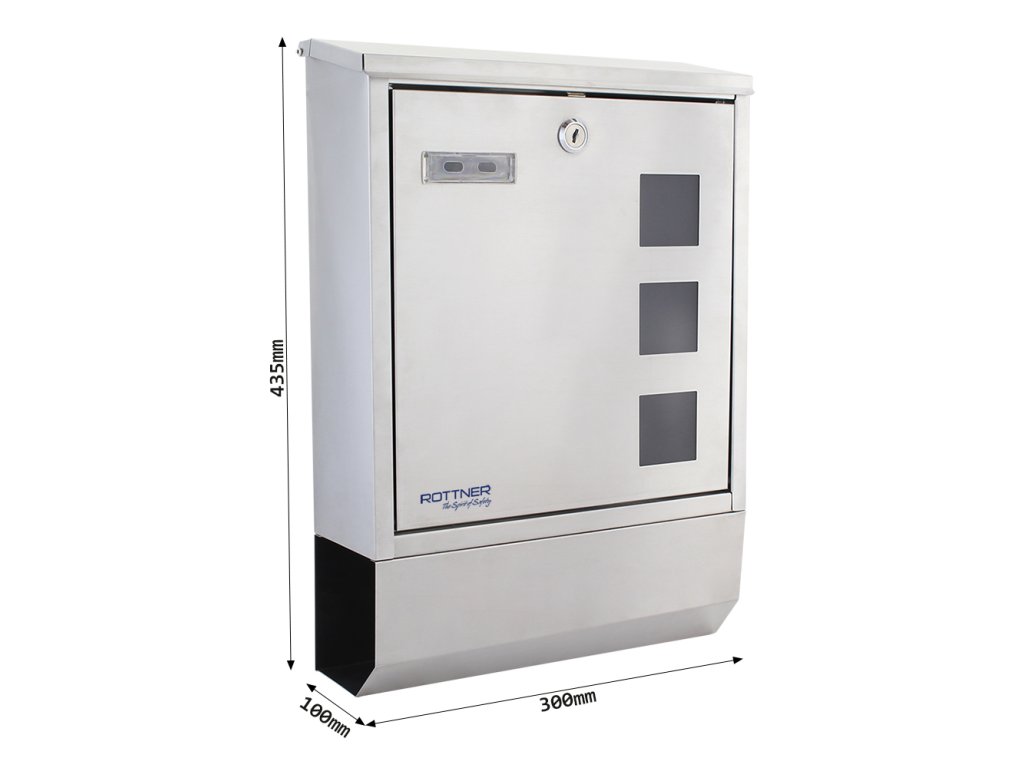 Dostatek prostoru pro zásilky s rozměrem A4 Samostatný prostor pro noviny Jmenovka a průhledné okénka Nerezový materiál