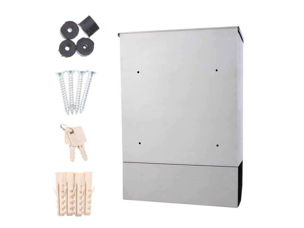 Hlavní výhody: Cylindrický zámek s 2 klíči Dostatek prostoru pro všechny vaše zásilky Průhledné okénka a jmenovka Samostatný prostor pro noviny Vrchní otvor pro zásilky A4 se stříškou Kotvící materiál pro upevnění na zeď v balení Poštovní schránka z nerezu zaujme už na první pohled svým moderním designem a precizním zpracováním. Kvalitní cylindrický zámek spolu s 2 klíči, jmenovka a průhledné okénka, abyste vždy měli jasný přehled, zda na vás čeká zásilka nebo ne. Dovnitř schránky je možné vhodit zásilky velikosti A4. Pro vhození pošty slouží vrchní štěrbina, která má krytku, aby se vašim zásilkám nic nestalo. Noviny si najdou své místo v samostatné dolní přihrádce. Potřebný materiál pro upevnění na zeď je součástí balení.Doplňkové parametry