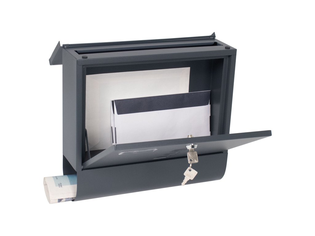 Hlavní výhody: Cylindrický zámek se 2 klíči Vrchní vhoz pro poštu do max. DIN C4 Jmenovka Samostatné místo pro noviny Velký otvor pro výběr pošty Otvory na zadní straně schránky Moderní a praktická schránka z kvalitní nerezavějící oceli odolá i různým povětrnostním podmínkám. Poštovní schránka je vhodná jak do exteriéru, tak i do interiéru např. do prostor bytových domů. V předních dveřích jsou 3 průhledné okénka, které vám jednoduše ukáží, ať už vaše pošta dorazila. Samozřejmostí je jmenovka. Na spodní straně schránky je praktický tunel, který slouží jako samostatné místo pro noviny a jinou denní tisk. V balení naleznete i přiložený upevňovací materiál pro připevnění schránky na stěnu.Doplňkové parametry