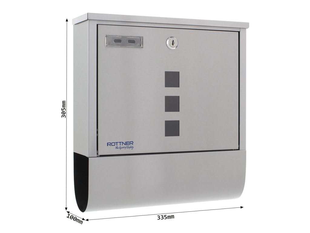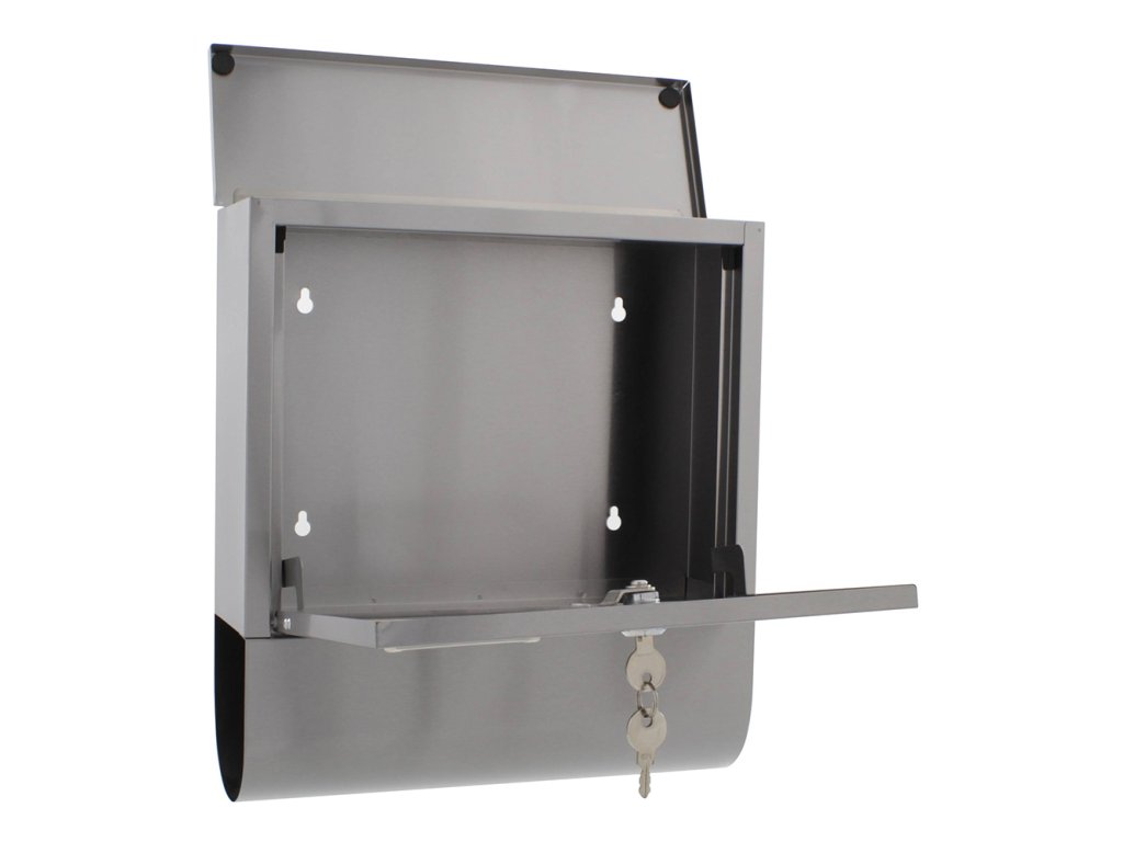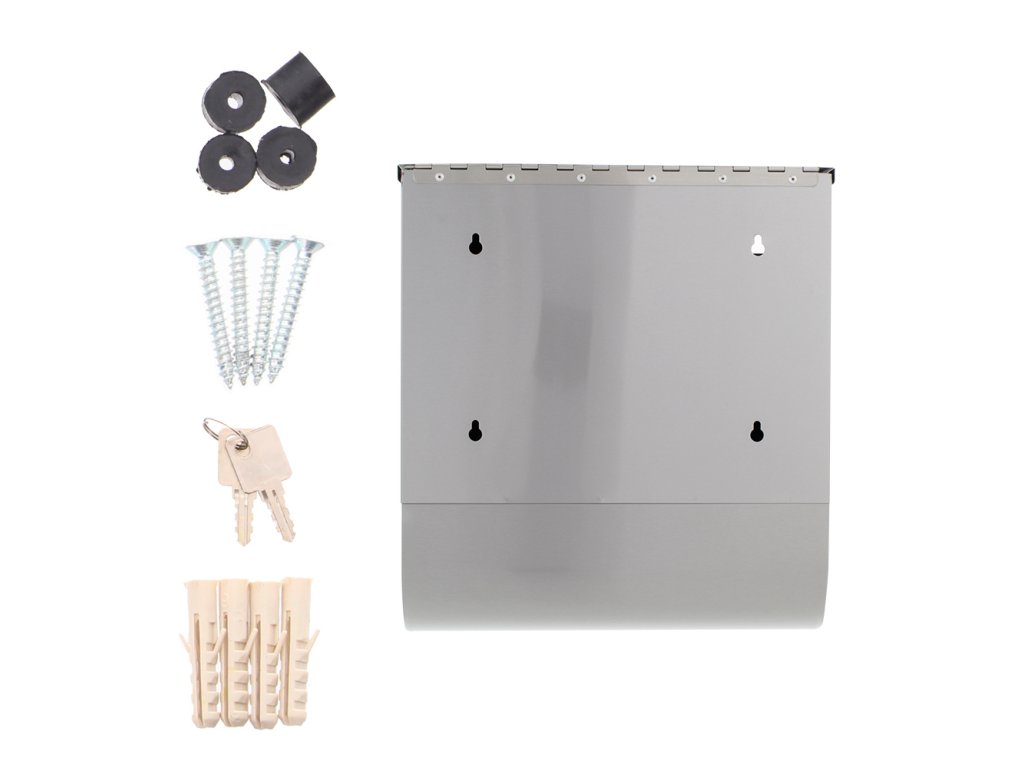 Hlavní výhody: Cylindrický zámek se 2 klíči Vrchní vhoz pro poštu do max. A4 Jmenovka Samostatné místo pro noviny Velký otvor pro výběr pošty Otvory na zadní straně schránky Moderní a praktická schránka z kvalitní nerezavějící oceli odolá i různým povětrnostním podmínkám. Poštovní schránka je vhodná jak do exteriéru, tak i do interiéru např. do prostor bytových domů. V předních dveřích jsou 3 průhledné okénka, které vám jednoduše ukáží, ať už vaše pošta dorazila. Samozřejmostí je jmenovka. Na spodní straně schránky je praktický tunel, který slouží jako samostatné místo pro noviny a jinou denní tisk. V balení naleznete i přiložený upevňovací materiál pro připevnění schránky na stěnu.Doplňkové parametry