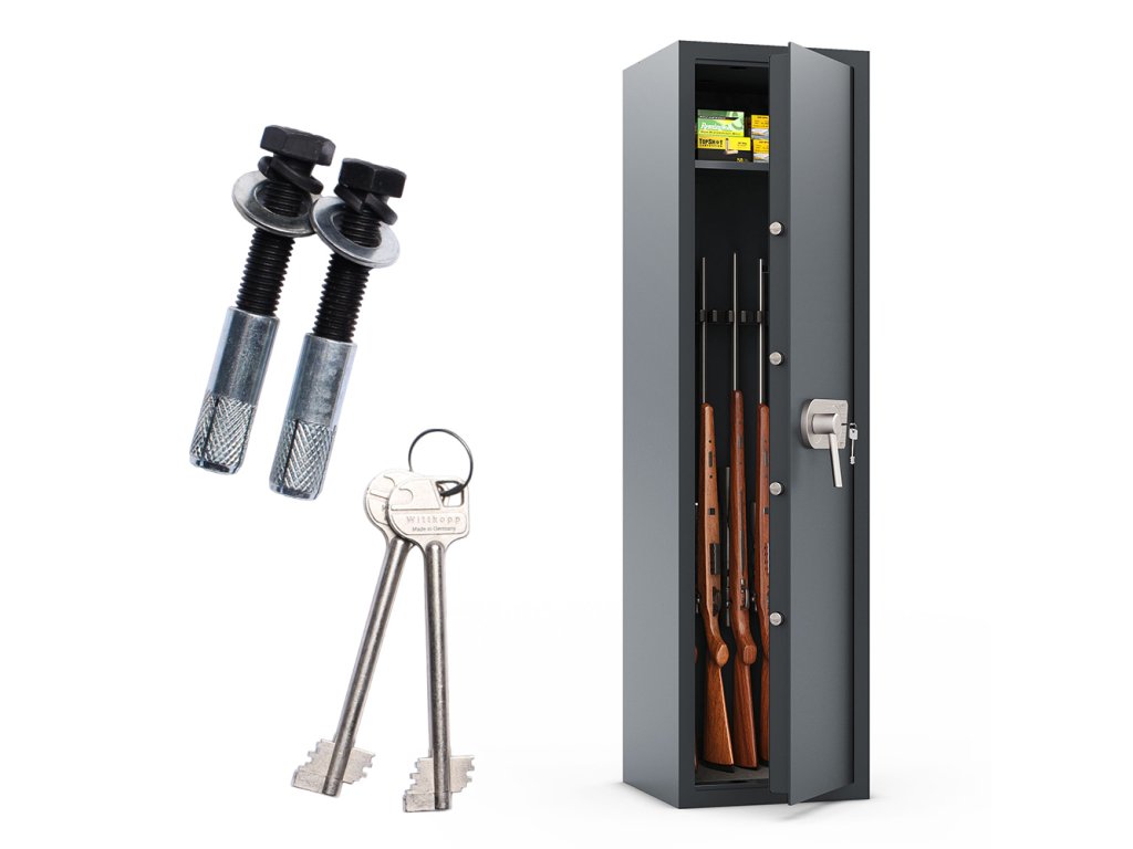 Certifikovaný trezorový zámek se 2 klíči Bezpečnostní třída O (ČSN EN 1143-1) Pro 5 dlouhých zbraní Polička uvnitř