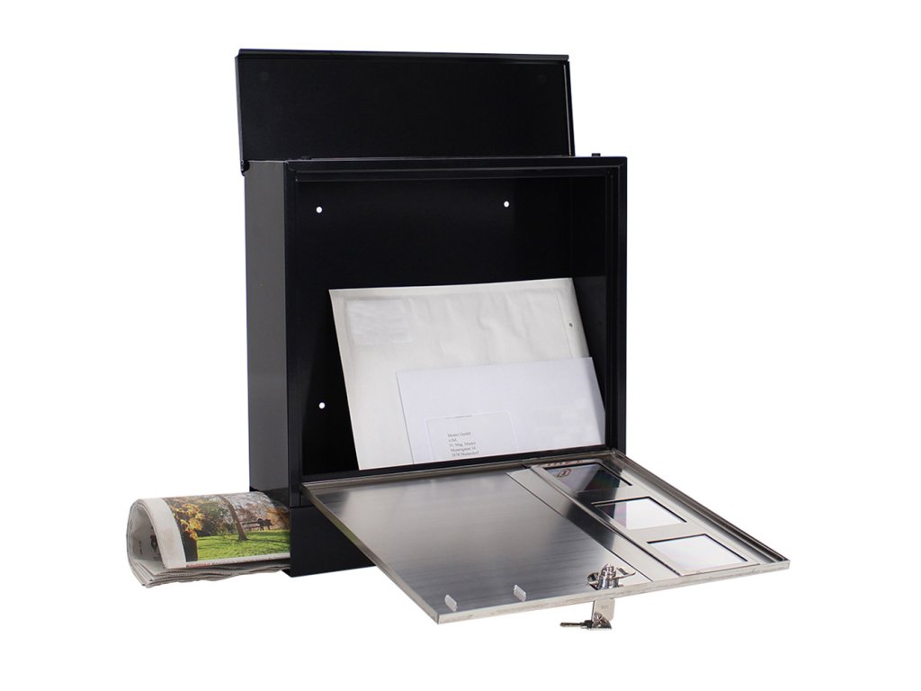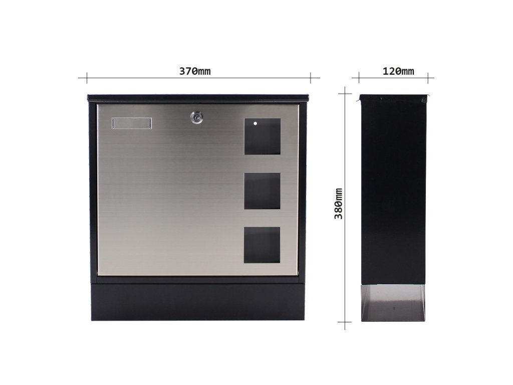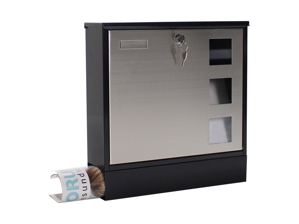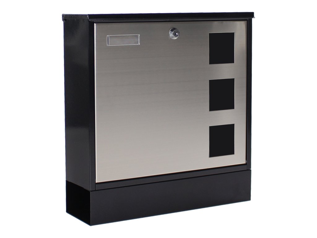 Hlavní výhody: Cylindrický zámek se 2 klíči Horní vhod pro poštu Jmenovka Samostatný box na noviny Odolnost proti povětrnostním vlivům Nerezová poštovní schránka Design nabízí zajímavou kombinaci černé barvy a nerezového materiálu. Disponuje klasickým cylindrickým zámkem, korpusem z pozinkovaného plechu a dvířkách z nerezového materiálu. Horní vhod se stříškou pro zamezení vnikání vody a nečistot dovnitř poštovní schránky. Pod horním vhozem najdeme jmenovku a 3 průhledné okénka. Rychle a jednoduše tak budete vidět, ať už vaše pošta dorazila. Výhodou poštovní schránky Design je samostatný box na noviny a jinou denní tisk. Vše tak bude pěkně roztříděné už při doručení. Poštovní schránku upevníte pomocí otvorů na zadní straně a přiloženého materiálu v balení.Doplňkové parametry
