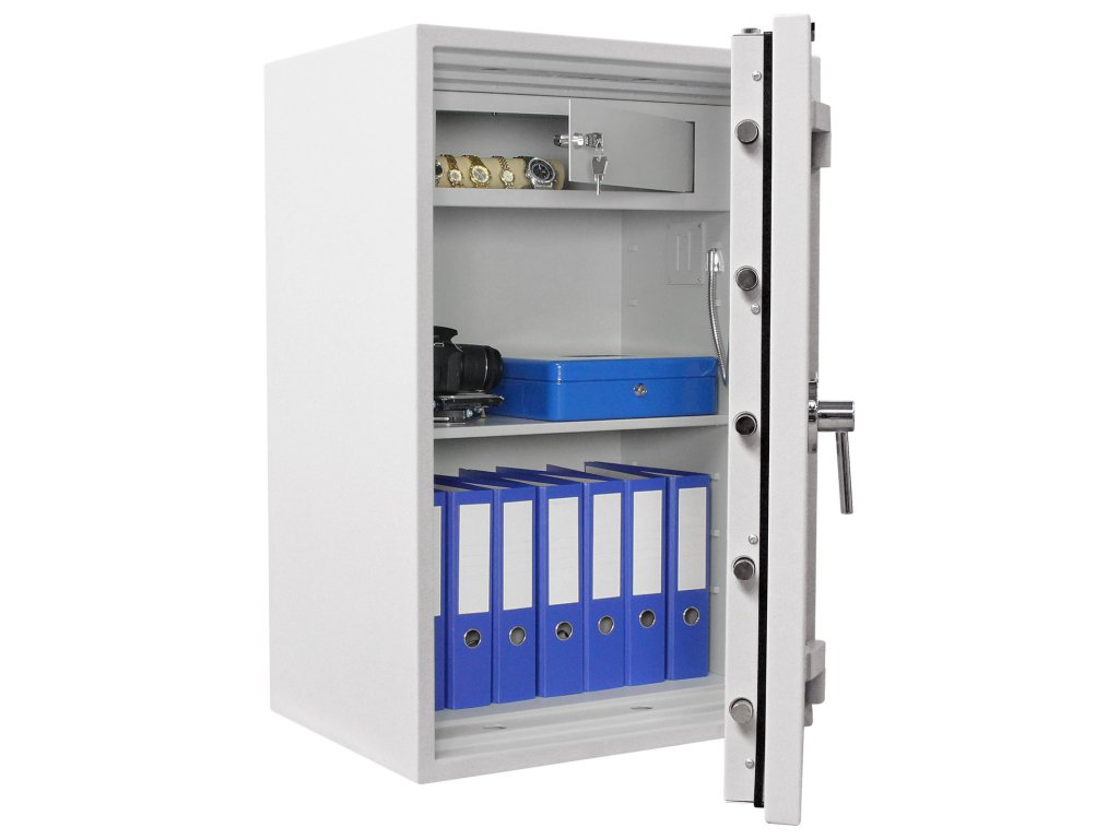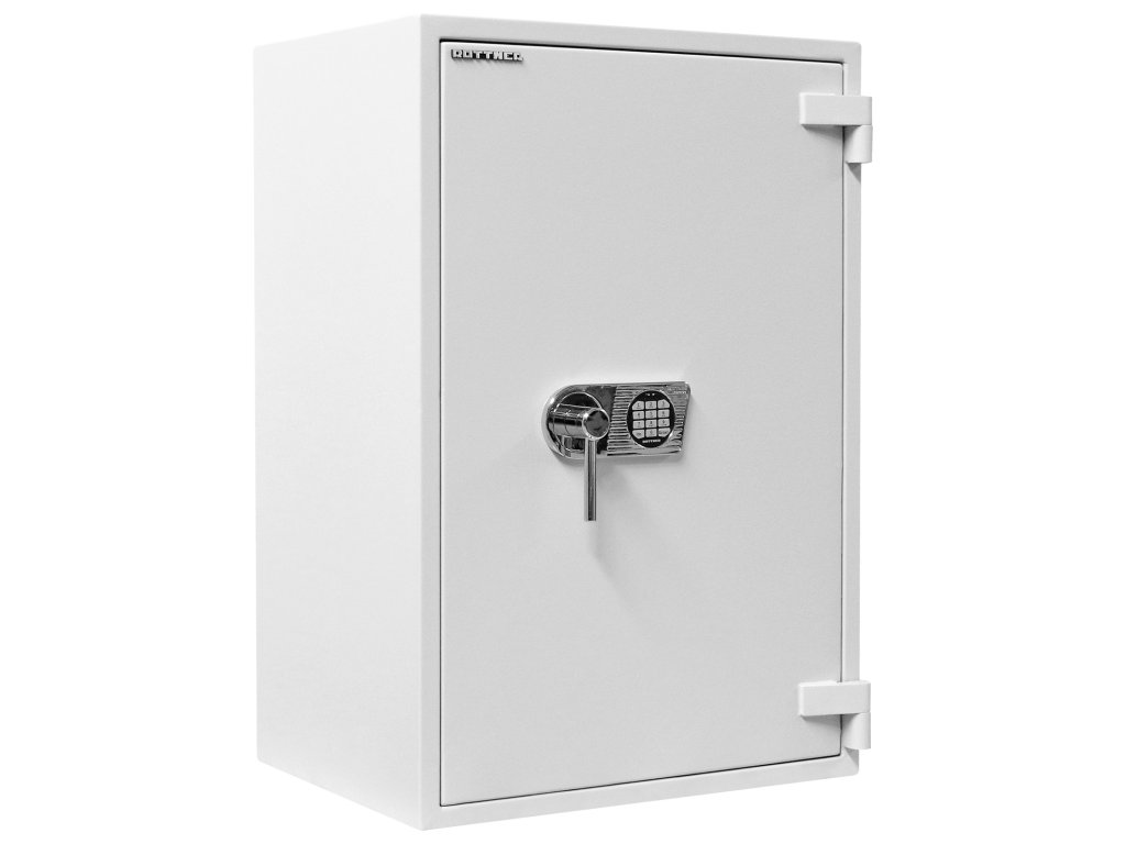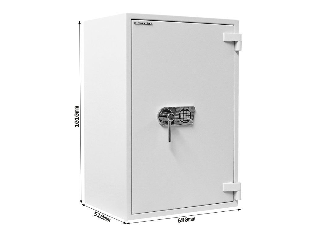 Certifikovaný elektronický zámek Bezpečnostní třída II (ČSN EN 1143-1) Ohnivzdornost po dobu 30 minut pro papír Napájení 1 x 9V baterií (není součástí balení) Vnitřní schránka a 2 poličky uvnitř