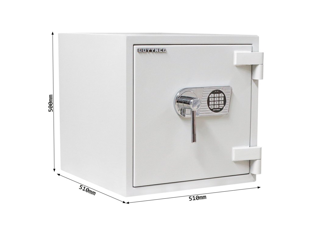 Certifikovaný elektronický zámek Bezpečnostní třída II (ČSN EN 1143-1) Ohnivzdornost po dobu 30 minut pro papír Napájení 1 x 9V baterií (není součástí balení) Vnitřní schránka a polička uvnitř