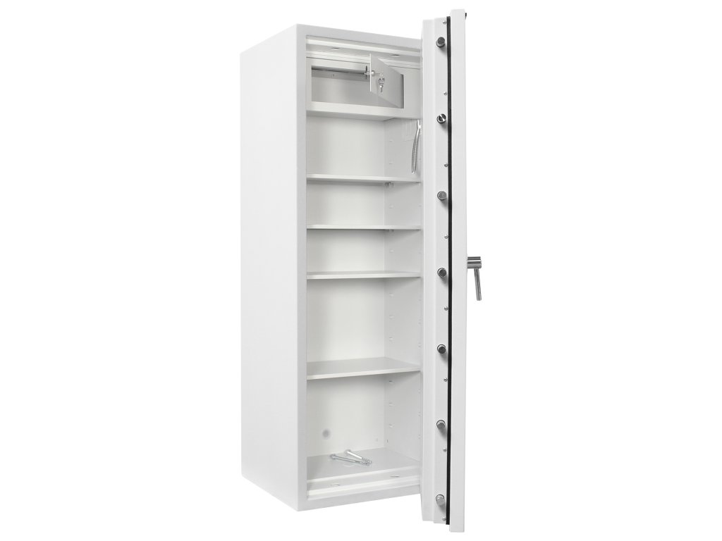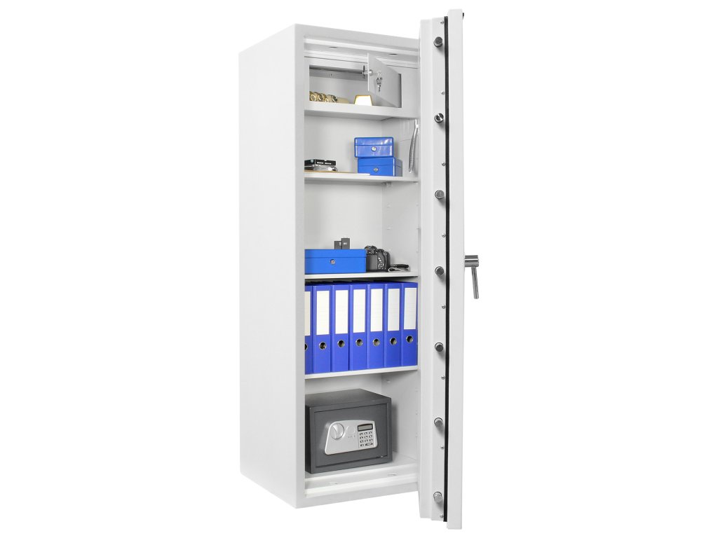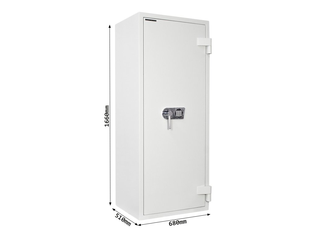 Certifikovaný elektornický zámek Bezpečnostní třída III (ČSN EN 1143-1) Ohnivzdornost po dobu 30 minut pro papír Napájení 1 x 9V baterií (není součástí balení) Vnitřní schránka 2 poličky uvnitř