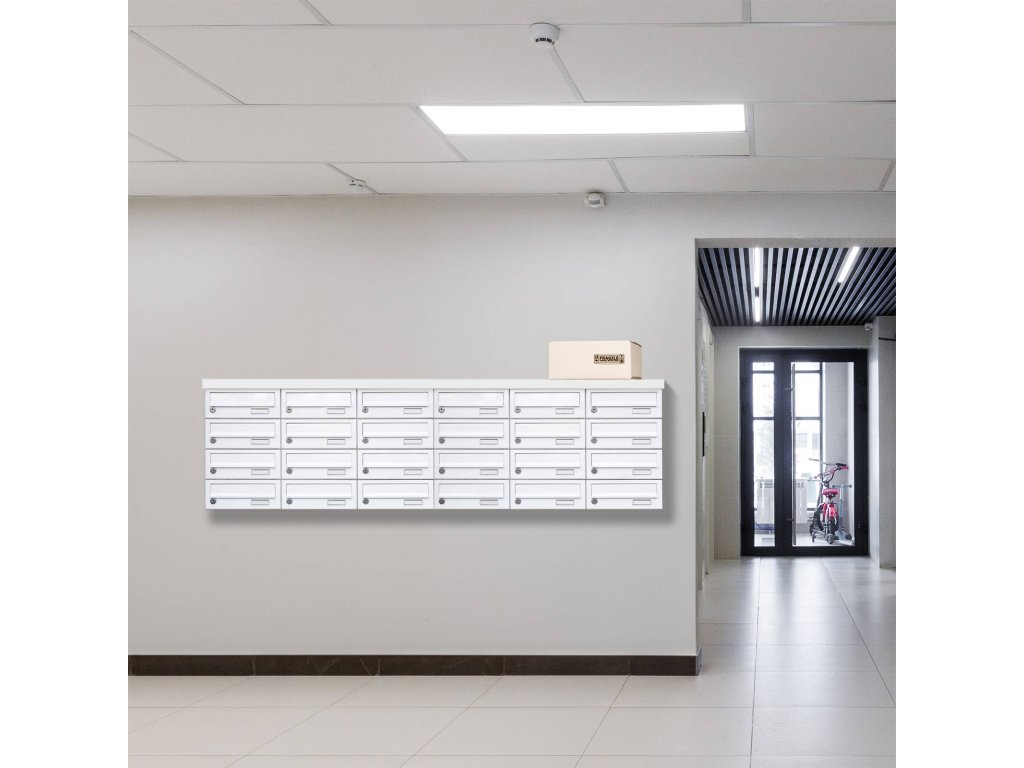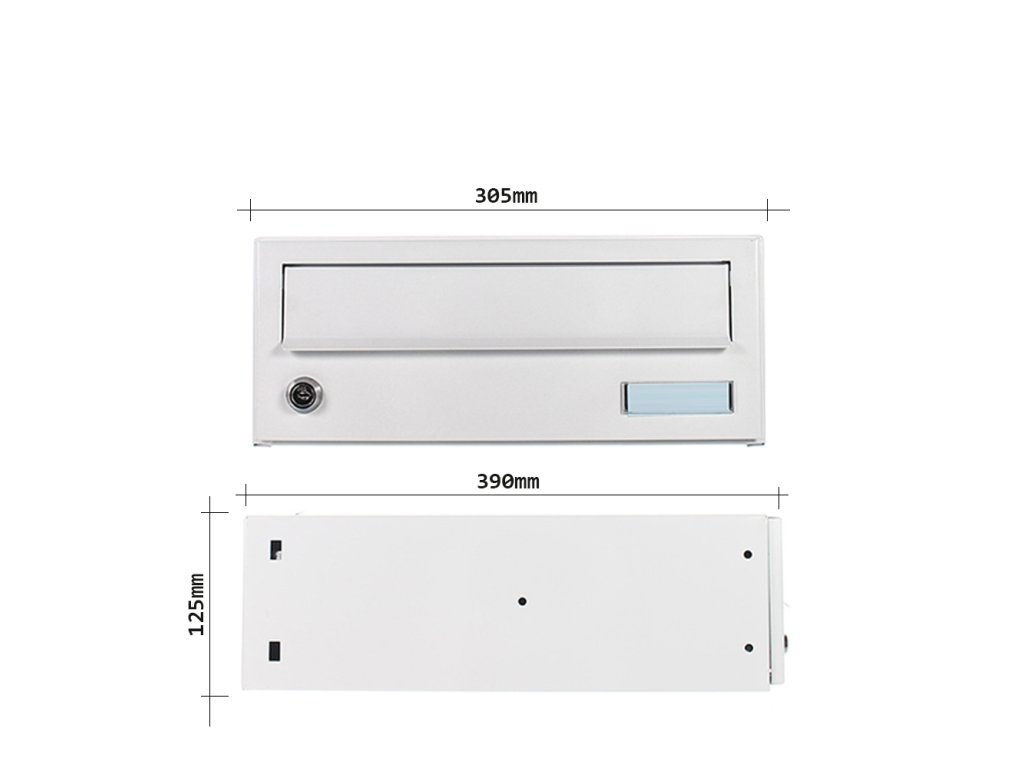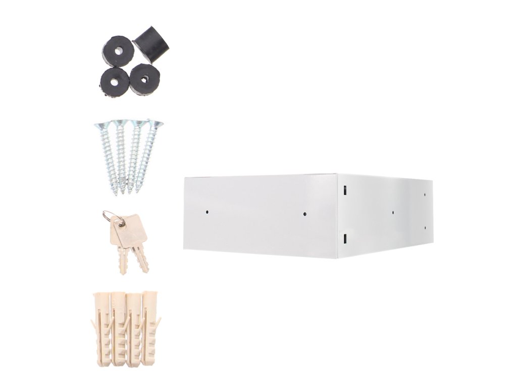 Hlavní výhody: Cylindrický zámek s 2 klíči Přední vhod pro poštu Jmenovka Odolnost proti povětrnostním vlivům Odolnost proti korozi Možnost skládat do sestav Bílá poštovní schránka opravdu netradičních rozměrů podobných menšímu boxu. Poštovní schránka je tak zvláště vhodná pro klasické listovní zásilky. Přední vhod je chráněn krytkou aby dovnitř nevnikala dešťová voda a jiné nečistoty. Pro vyjmutí pošty postačí vložit klíč, otočit a podlhovlasté přední dvířka otevřít směrem stranou. Na dvířkách se nachází také místo pro jmenovku. Schránku lze skládat do sestav, což obzvlášť ocení obyvatelé bytovek a paneláků. Schránku dodáváme spolu s materiálem na upevnění.Doplňkové parametry