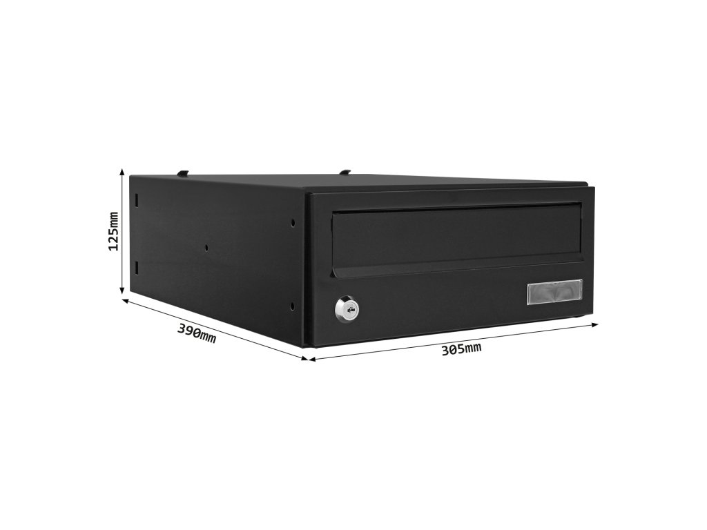 Hlavní výhody: Cylindrický zámek s 2 klíči Přední vhod pro poštu Jmenovka Odolnost proti povětrnostním vlivům Odolnost proti korozi Možnost skládat do sestav Černá poštovní schránka v užším formátu nabízí bezpečné místo pro klasické poštovní zásilky. Přední vhod je chráněn krytkou, aby dovnitř nevnikala dešťová voda nebo nečistoty. Pod krytkou je místo na vaši vlastní jmenovku. Kvalitní zpracování schránky je odolné proti povětrnostním vlivům a také proti korozi. Velkou výhodou poštovní schránky je možnost skládání do sestav. Poštovní schránku lze upevnit pomocí přiloženého upevňovacího materiálu.Doplňkové parametry