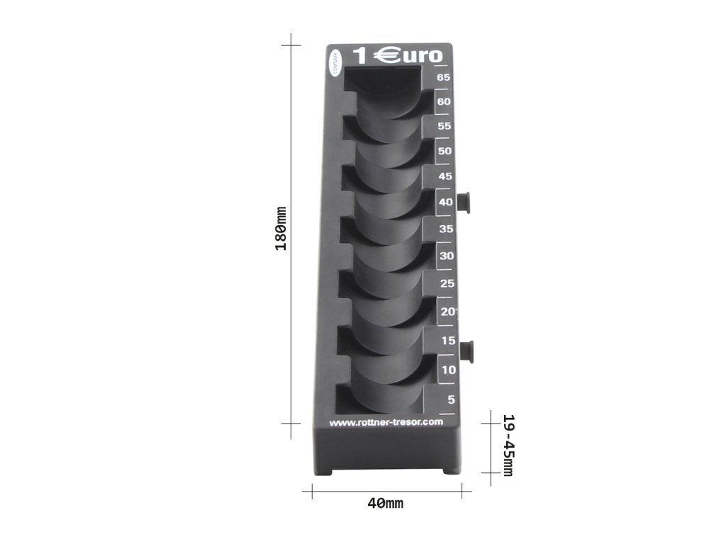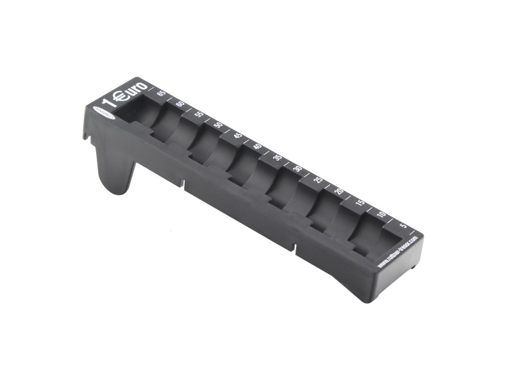 Hlavní výhody: Pro eurové euromince Systém skládání s dalšími přihrádkami Snadná organizace a počítání euromincí Kvalitní plast Černá přihrádka na eurové euromince disponuje praktickým úložištěm. Pro spočítání aktuálně uložené hotovosti je na boku přihrádky stupnice pro rychlejší přepočítání. V případě koupě více přihrádek je můžete skládat do větších celků. Zadní strana přihrádky je mírně vyvýšená což usnadňuje manipulaci.Doplňkové parametry