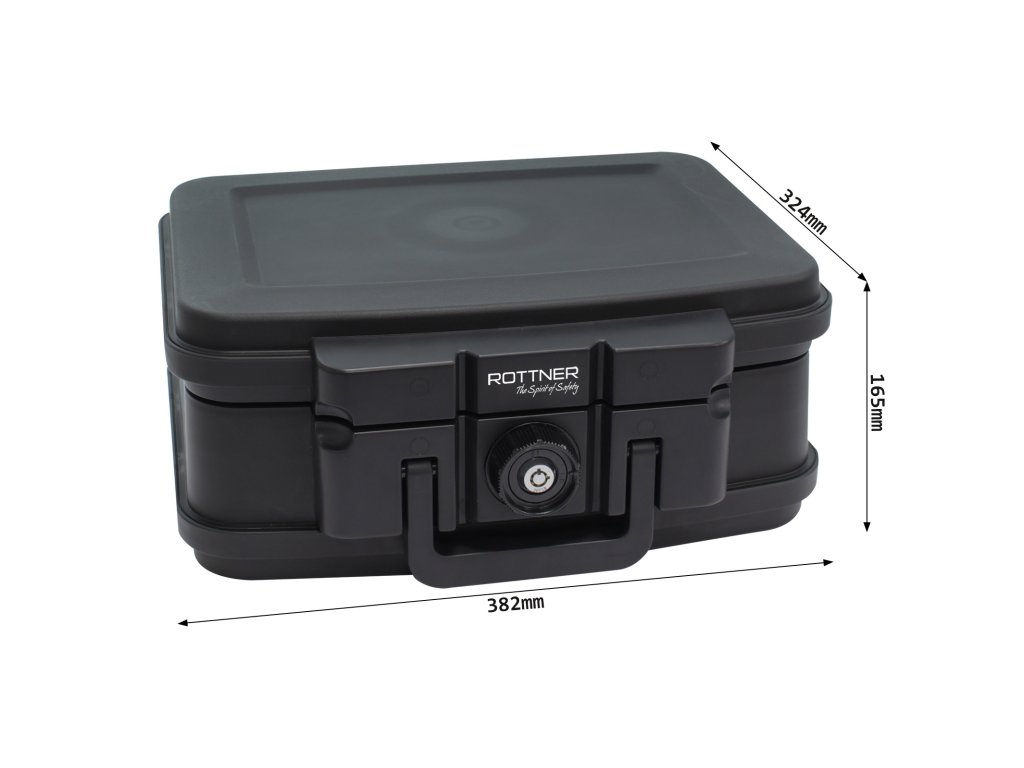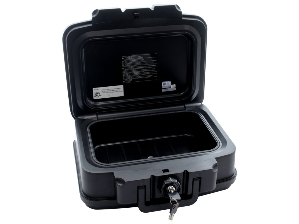 Hlavní výhody: Cylindrický zámek se 2 klíči Ohnivzdornost po dobu 30 minut pro dokumenty při max. teplotě 843 °C (UL testováno - vnitřní teplota zůstává nižší než 177 °C) Praktická rukojeť pro přenos Kvalitní plastové provedení Menší ohnivzdorný box v černé barvě s modelovým označením Fire Data 1 disponuje klasickým cylindrickým zámkem dodávaným spolu s 2 klíči na otevření. Box má praktickou rukojeť pro snadný přenos uložených věcí přímo v boxu. Box je ohnivzdorný, a to až po dobu 30 minut pro papírové dokumenty (testováno při teplotě 843 °C). Box však není však voděodolný. Kvalitní plastové provedení vydrží i časté přenášení. Pro tuto schránku na zbraně je stanoveno, že při přechovávání krátkých zbraní do počtu 2 ks nebo do 500 ks nábojů plati prohlášení o shodě.Doplňkové parametry