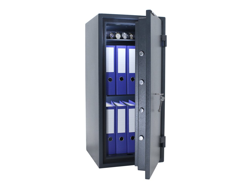 Certifikovaný trezorový zámek Ohnivzdornost po dobu 30 minut pro papír Bezpečnostní třída I (ČSN EN 1143-1) Nastavitelná polička uvnitř
