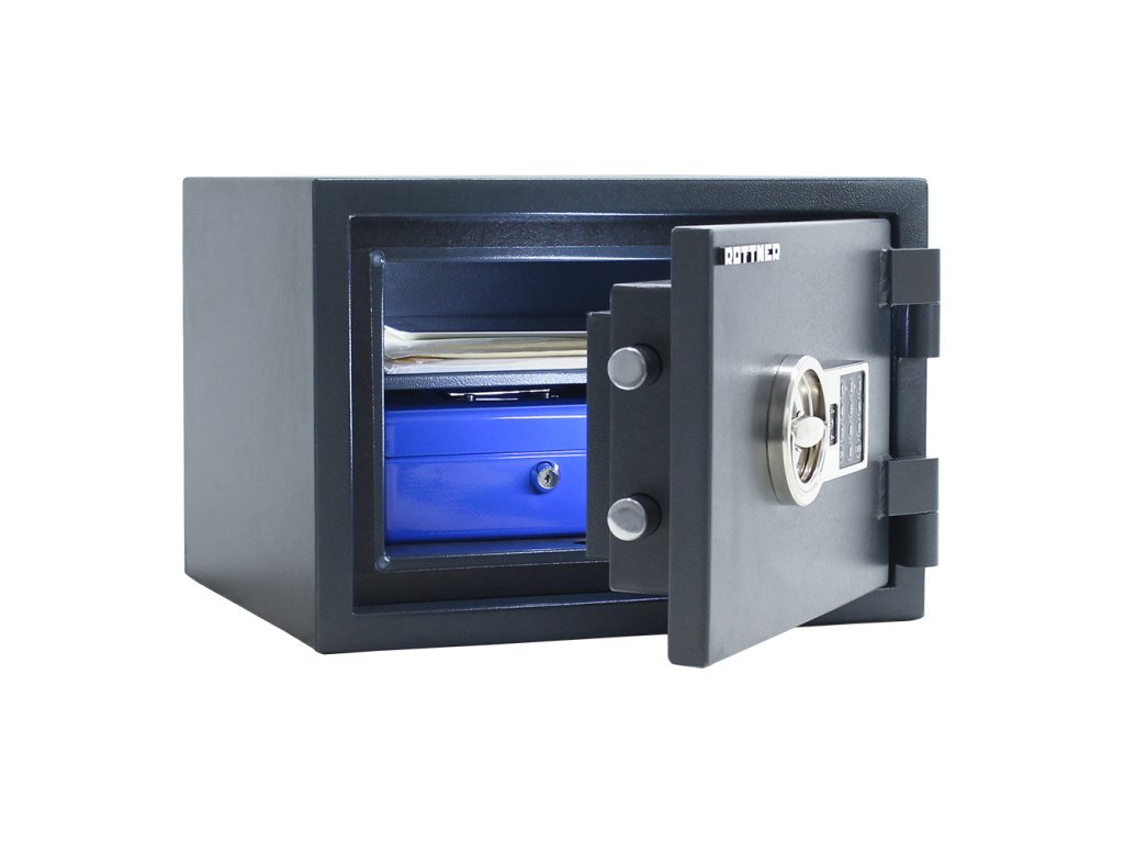 Hlavní výhody: Certifikovaný elektronický zámek Bezpečnostní třída I (ČSN EN 1143-1) Ohnivzdornost po dobu 30 minut pro papír Napájení 1 x 9V baterií (není součástí balení) 3-stranný uzamykací mechanizmus Korpus tloušťky 56 mm a dveře tloušťky 95 mm Nastavitelná polička uvnitř Otevření dveří až do 180° Možnost doobjednání teleskopické police Možnost doobjednání teleskopické registratury Elektronické nouzové otevírání externí baterií Otvory na ukotvení na spodní straně trezoru Šedý trezor z modelové řady Fire Hero nabízí bezpečné uložení věcí a zároveň i jejich spolehlivou ochranu před ohněm. Trezor totiž disponuje bezpečnostní třídou I a ohnivzdorností až po dobu 30 minut. Pro přístup do trezoru je třeba zadat kód, aby se certifikovaný elektronický zámek otevřel. Jeho napájení zajišťuje 9V baterie. Po otevření dveří až do úhlu 180° je možné věci pohodlně uložit. Následně po zavření dveří a opětovném zadání kódu se trezor uzamkne pomocí 3-stranného mechanismu. Uvnitř se nachází nastavitelná polička pro lepší uspořádání uložených věcí. Trezor nabízí i možnost doobjednání doplňkové výbavy. Na spodní straně trezoru jsou připraveny otvory pro ukotvení. Kotvící materiál je součástí balení. Kování zámku zvyšuje celkovou vnější hloubku trezoru o 20 mm.Doplňkové parametry
