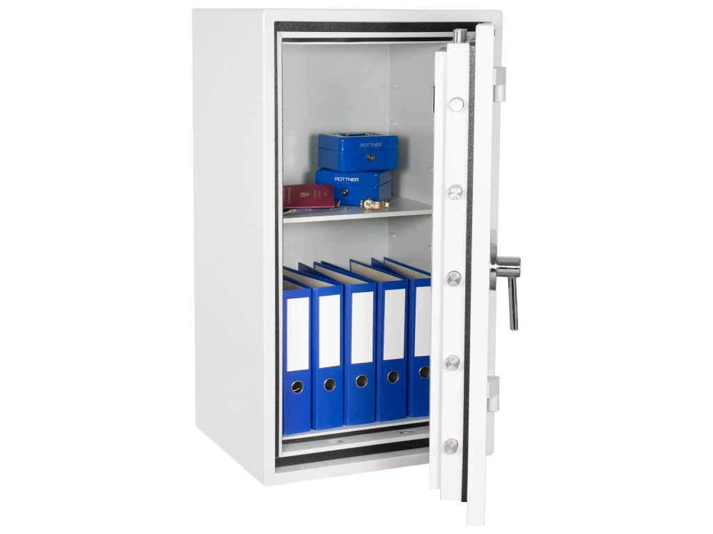 Ohnivzdorný trezor v bezpečnostní třídě II. podle EN 1143 Ohnivzdornost po dobu 60 minut pro papírové dokumenty podle LFS-60P 9 uživatelských kódů/ Master Code 1 police