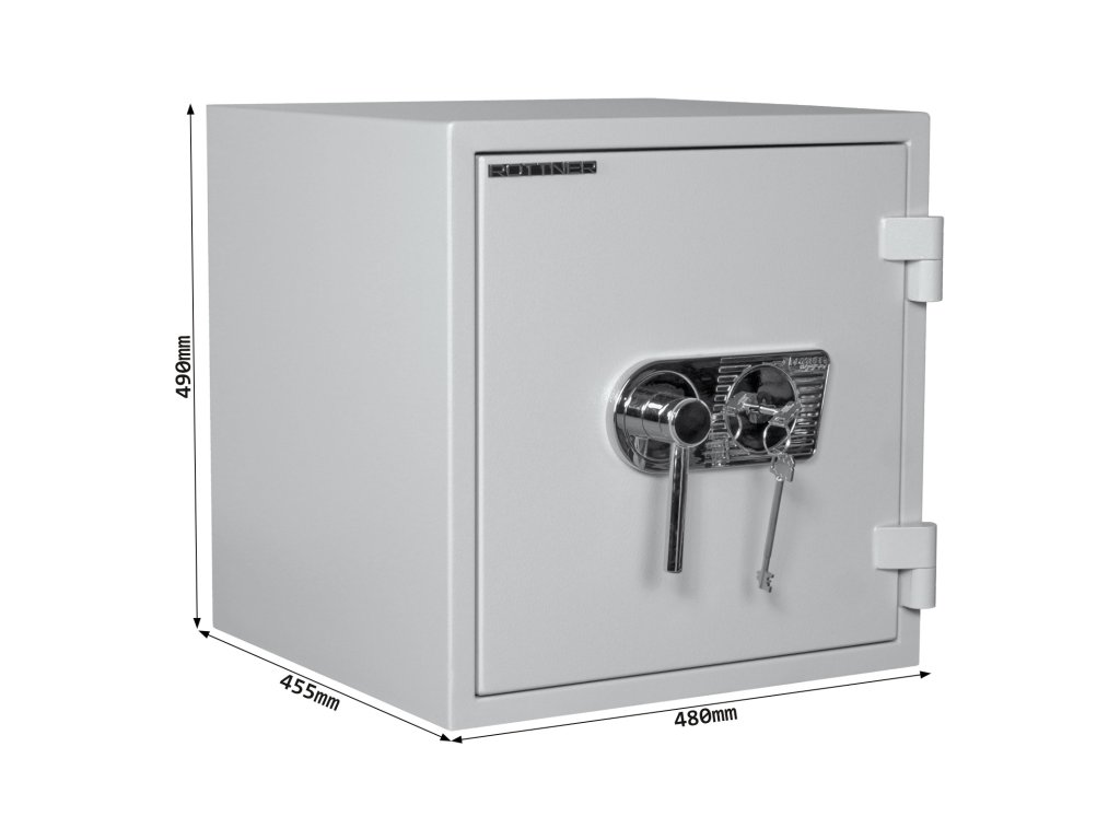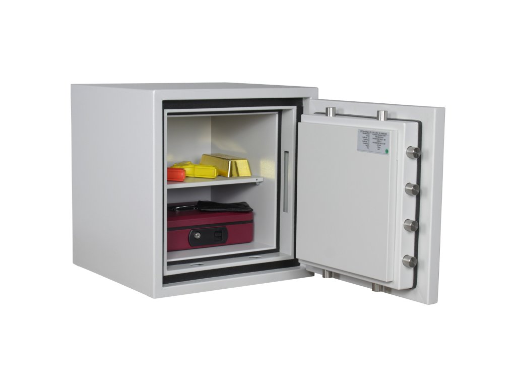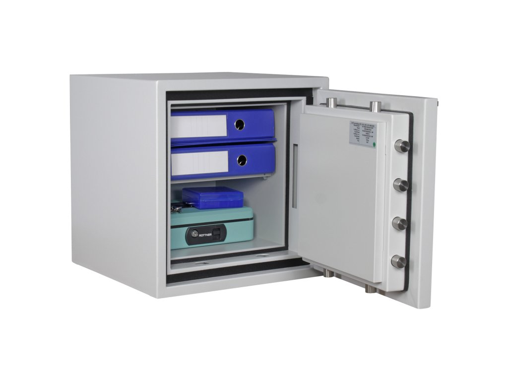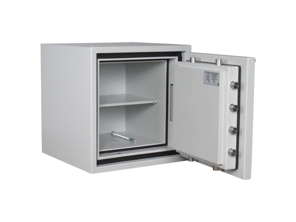 Certifikovaný trezorový zámek (ČSN EN 1143) Bezpečnostní třída II Ohnivzdornost po dobu 60 minut pro papír Polička uvnitř