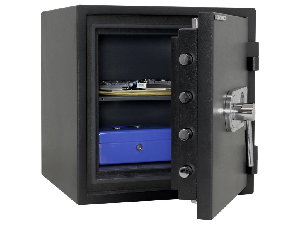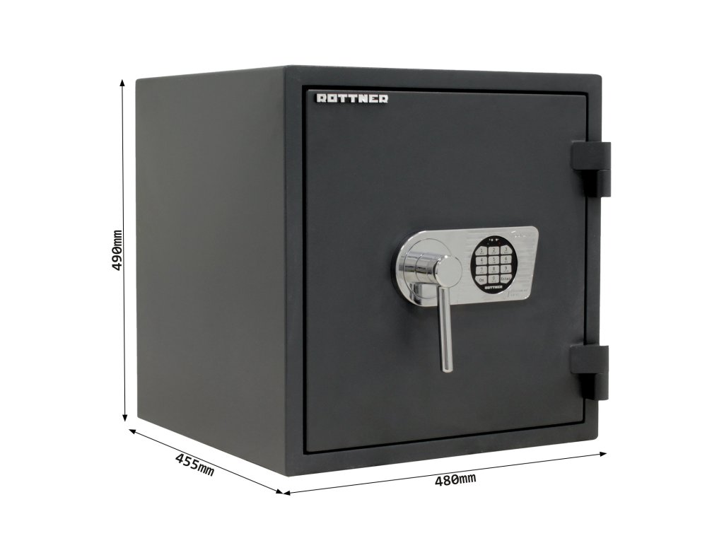 Certifikovaný elektronický zámek Bezpečnostní třída I (ČSN EN 1143-1) Ohnivzdornost po dobu 60 minut pro papír Napájení 1 x 9V baterií (není součástí balení) Polička uvnitř Možnost doplňkové výbavy