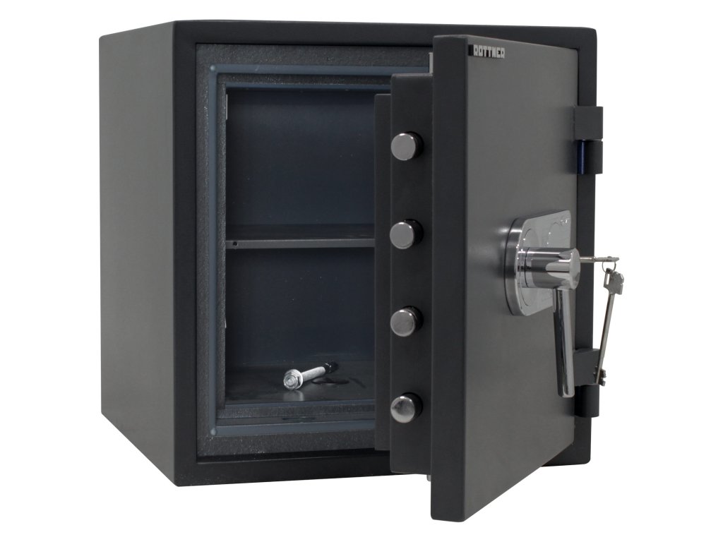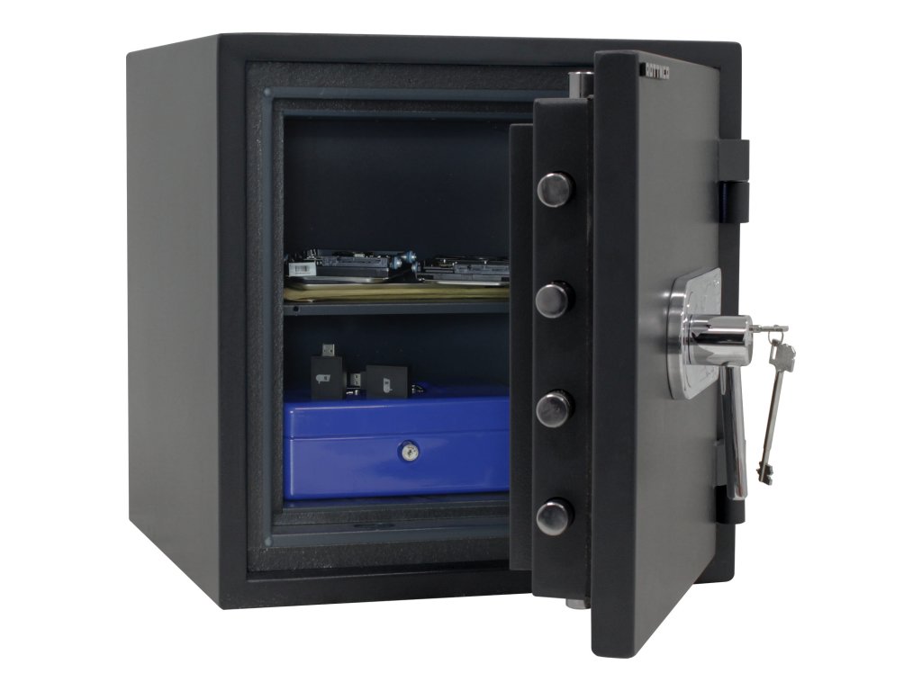 Certifikovaný trezorový zámek Bezpečnostní třída I (ČSN EN 1143-1) Ohnivzdornost po dobu 60 minut pro papír Polička uvnitř