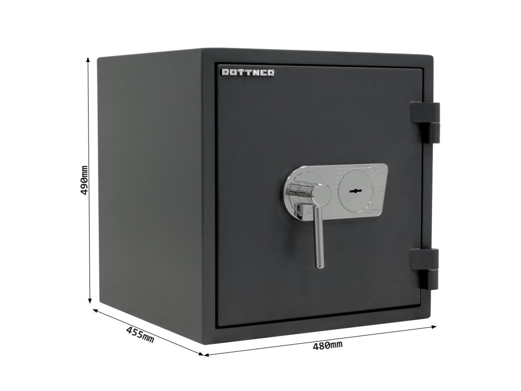 Hlavní výhody: Certifikovaný trezorový zámek Bezpečnostní třída I (ČSN EN 1143-1) Ohnivzdornost po dobu 60 minut pro papír Možnost úschovy i zbraní a munice podle č. 190/2003 Sb. z. 3-stranný uzamykací mechanizmus Speciální betonová výplň Otevření dveří až do 180° Polička uvnitř Možnost doobjednání teleskopických polic Možnost doobjednání teleskopické registratury Otvory na ukotvení na spodní straně trezoru Nábytkový sejf FireProfi 50 nabízí bezpečné uložení cenností a šperků i díky certifikovanému trezorovým zámkem. Trezor disponuje certifikátem o bezpečnostní třídě I (ČSN EN 1143-1). Vydrží i v případě požáru, protože trezor je ohnivzdorný po dobu 60 minut. Kromě klasických cenností, šperků, šanonů a jiných věcí je možné v trezoru uschovat i krátké zbraně a munici. Odolnosti vůči ohni napomáhá i speciální betonová výplň mezi jednotlivými plášti trezoru. Pohodlný výběr a uložení věcí dovolují i trezorové dveře, které lze otevřít až do úhlu 180°. Pro lepší organizaci uložených věcí je trezor vybaven poličkou. K trezoru je možné doobjednat i doplňkovou výbavu. Na spodní straně trezoru jsou připraveny otvory pro ukotvení. Kotvící materál je součástí balení. Kování zámku zvyšuje celkovou vnější hloubku trezoru o 60 mm.Doplňkové parametry
