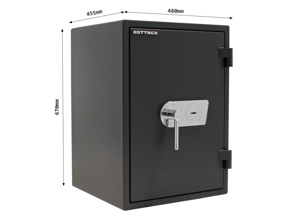 Certifikovaný trezorový zámek Bezpečnostní třída I (ČSN EN 1143-1) Ohnivzdornost po dobu 60 minut pro papír Polička uvnitř Možnost doplňkové výbavy