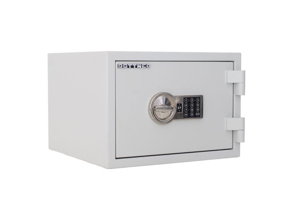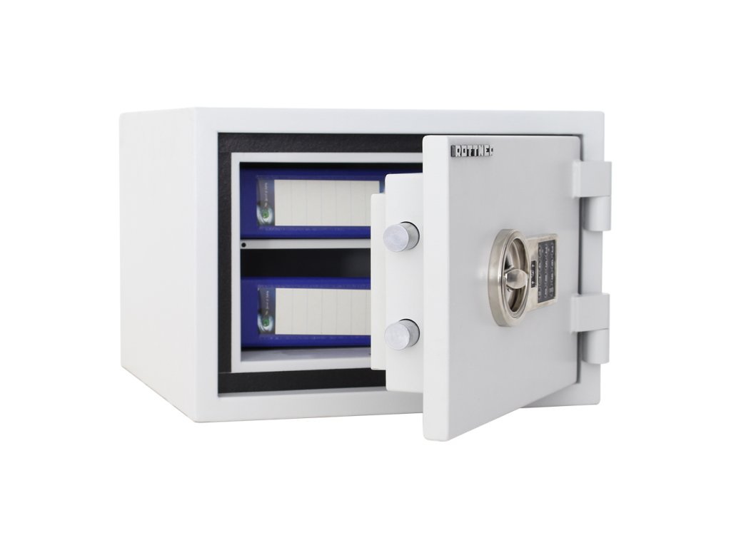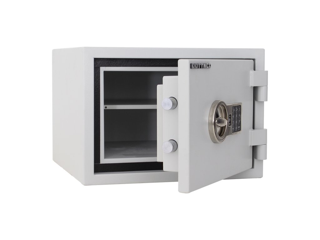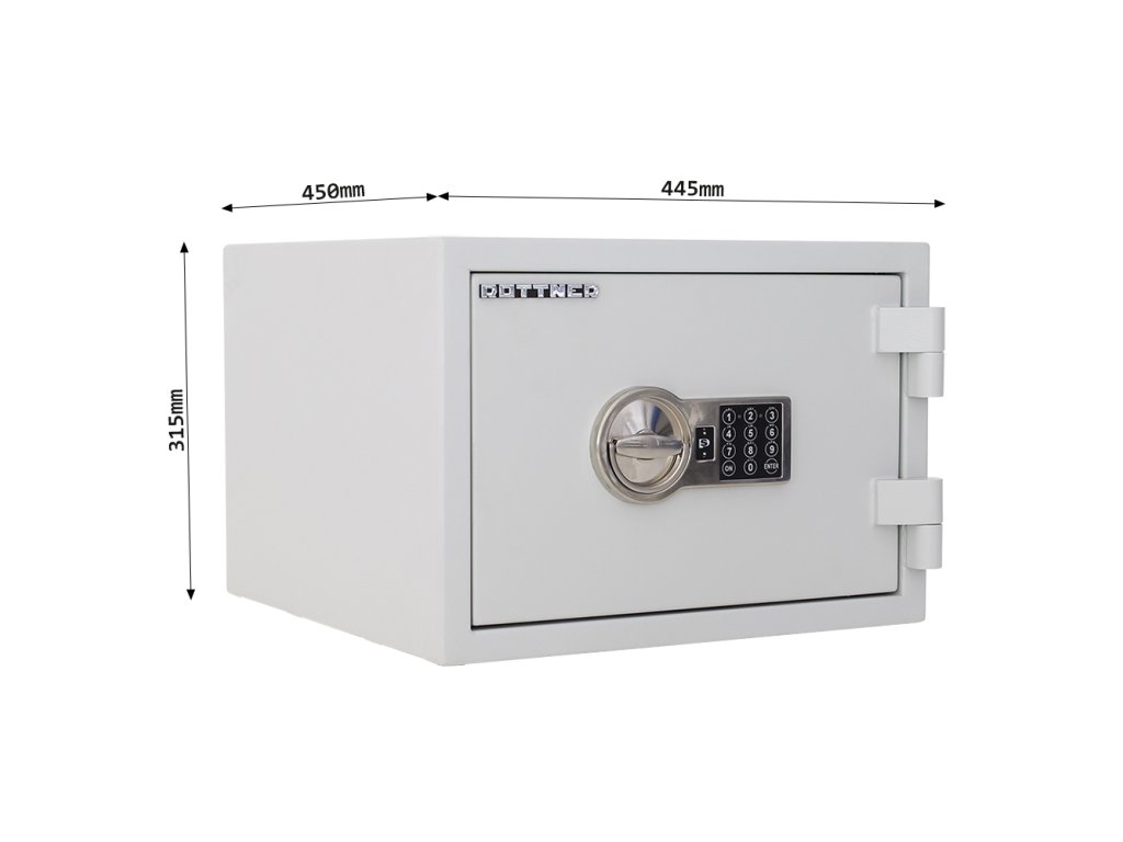 Certifikovaný elektronický zámek Bezpečnostní třída S2 (ČSN EN 14450) Napájení 1 x 9V baterií (není součástí balení) Ohnivzdornost po dobu 30 minut pro papír Polička uvnitř