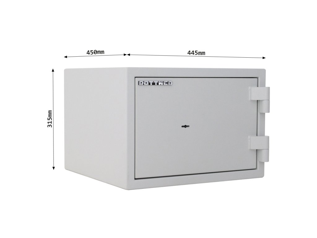 Hlavní výhody: Certifikovaný trezorový zámek se 2 klíči Bezpečnostní třída S2 (ČSN EN 14450) Odolnost proti ohni až do 30 minut Možnost úschovy i zbraní a střeliva podle č.190 / 2003 Sb. z. Dvouplášťové stěny o tloušťce 56 mm 3 stranný uzamykací mechanismus Betonová výplň mezi plášti trezoru Polička uvnitř Otevření dveří až do 180° Otvory na ukotvení na spodní i zadní straně trezoru Možnost doobjednání teleskopické police Možnost doobjednání teleskopické závěsné registratury Nábytkový trezor modelové řady Fire Safe představuje možnost i v domácích podmínkách ochránit své cennosti, dokumenty a cestovní doklady proti ohni a to až po dobu 30 minut. Trezor má bezpečnostní třídu S2 (ČSN EN 14450) a certifikován trezorový zámek. K zámku jsou dodávány 2 klíče. Kromě cenností, důležitých šanonů a dokumentů je možné v trezoru uschovat i zbraně a munici. Uvnitř najdete praktickou poličku na předělení prostoru trezoru. Pořádný přístup do trezoru dovolují tlusté dveře, které lze otevřít až do úhlu 180°. Trezor je možné upevnit na podlahu nebo stěnu prostřednictvím připravených otvorů. Kotvící materiál je součástí dodávky. Kromě zmíněné výbavy je možné k trezoru doobjednat teleskopické polici a teleskopickou závěsnou registraturu.Doplňkové parametry