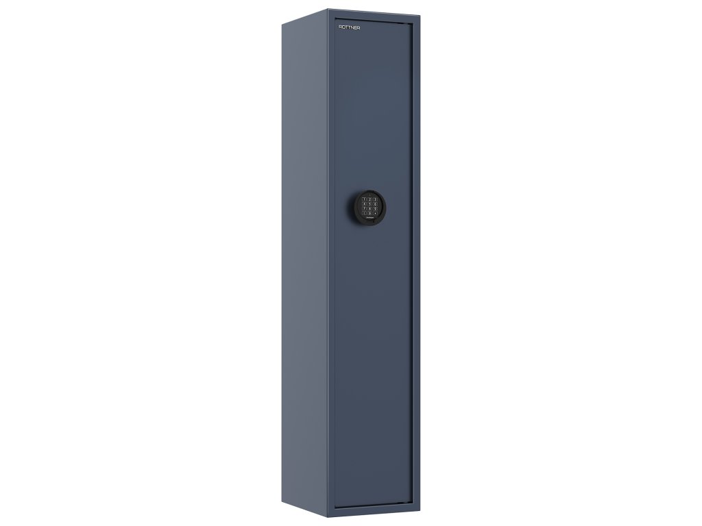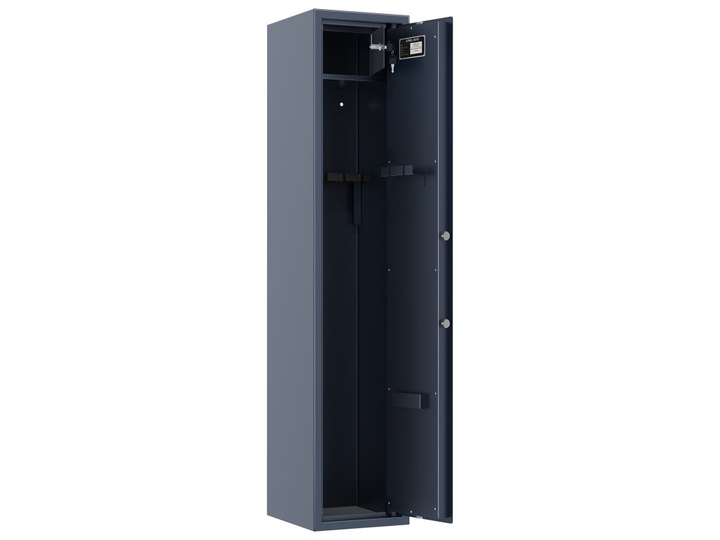 Certifikovaný elektronický zámek Bezpečnostní třída S1 (ČSN EN 14450) Minimálně 15 RU (ČSN EN 1143-1) Prostor pro 5 dlouhých zbraní Napájení 1 x 9V baterií (není součástí balení) Vnitřní schránka