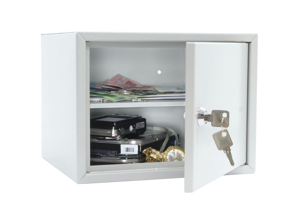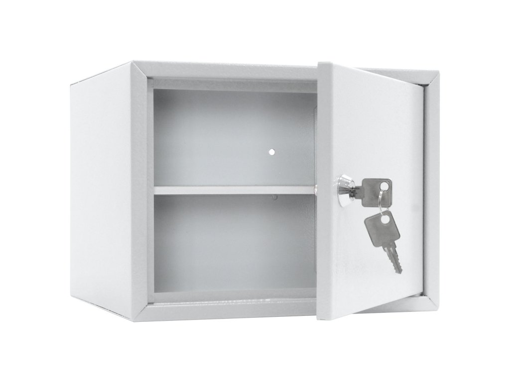 Hlavní výhody: Cylindrický zámek Polička uvnitř Dveře tloušťky 4 mm Korpus tloušťky 1 mm Pozinkovaný materiál Otvory na ukotvení na spodní a zadní straně Sejf z modelové třídy Home Case disponuje cylindrickým zámkem dodávaným spolu s 2 klíči. Sejf ma praktické rozměry a je vhodný pro přímé zabudování do skříně, nočního stolku nebo pracovního stolku. Dveře tloušťky 4 mm lze otevřít do úhlu 90°. Sejf Home Case 2 je vhodný pro uložení peněženky, osobních věcí, dokladů nebo klíčů. Uvnitř sejfu se nachádzí polička. Sejf je vyroben z kvalitního pozinkovaného materiálu a má připravené otvory na spodní a zadní straně. Materiál k upevnění je součástí balení.Doplňkové parametry