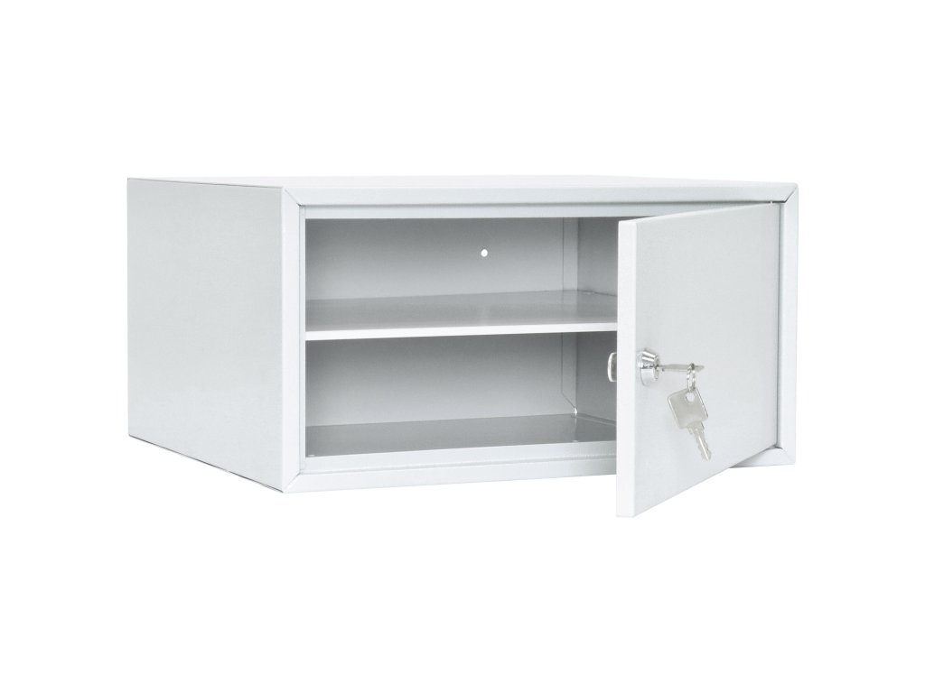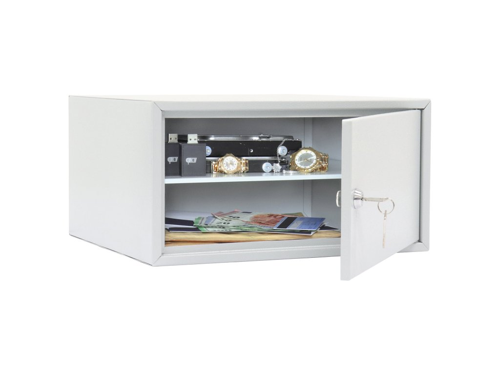 Hlavní výhody: Cylindrický zámek Polička uvnitř Dveře tloušťky 4 mm Korpus tloušťky 1 mm Pozinkovaný materiál Otvory na ukotvení na spodní a zadní straně Sejf z modelové třídy Home Case disponuje cylindrickým zámkem dodávaným spolu s 2 klíči. Sejf ma praktické rozměry a je vhodný pro přímé zabudování do skříně, nočního stolku nebo pracovního stolku. Dveře tloušťky 4 mm lze otevřít do úhlu 90°. Sejf Home Case 4 je vhodný pro uložení peněženky, osobních věcí, dokladů nebo klíčů. Uvnitř sejfu se nachádzí polička. Sejf je vyroben z kvalitního pozinkovaného materiálu a má připravené otvory na spodní a zadní straně. Materiál k upevnění je součástí balení.Doplňkové parametry
