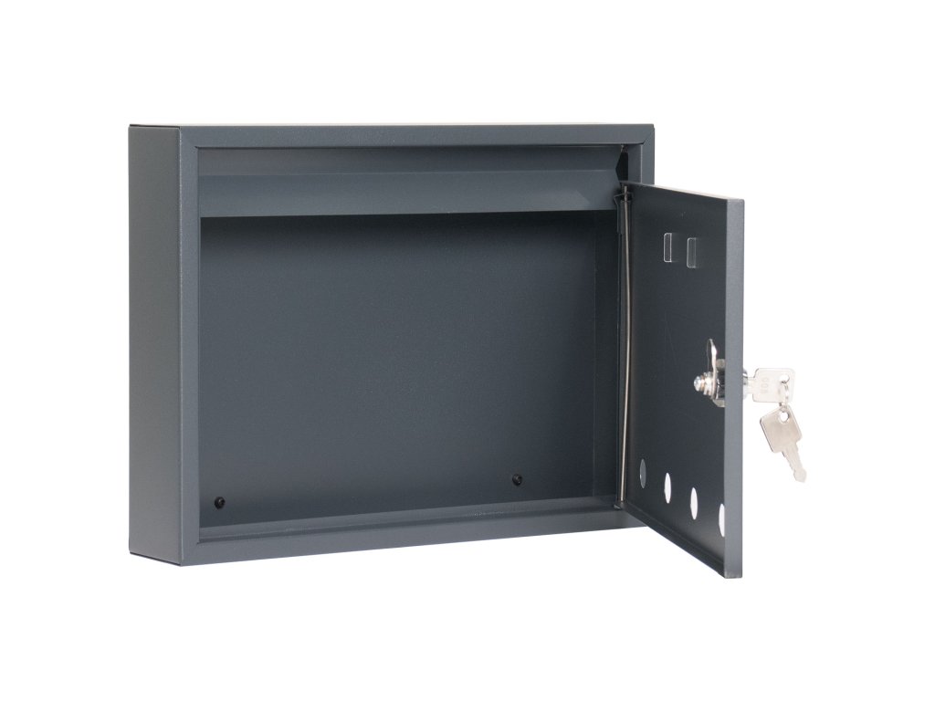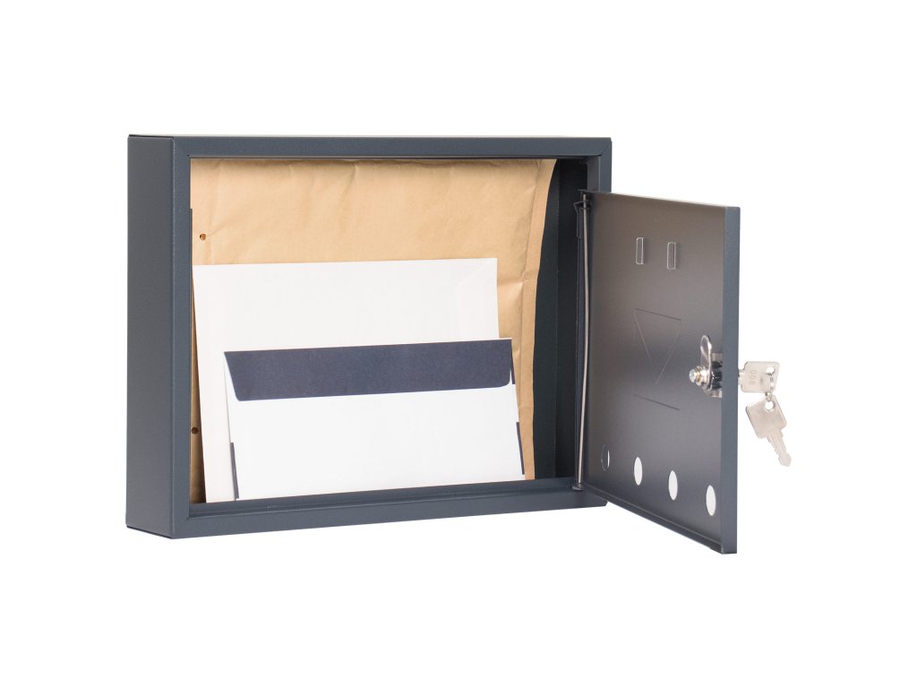 Hlavní výhody: Cylindrický zámek s 2 klíči Odolnost vůči rezivění a povětrnostním vlivům Klasický design s jmenovkou Přední vhod pro poštu Schránku lze skládat do sestav Antracitová poštovní schránka z modelové řady Imola zaujme svým nadčasovým designem a detailem poštovní obálky na přední straně. Kvalitní ocelové zpracování je odolné proti povětrnostním podmínkám. Schránku tak můžete použít nejen uvnitř bytových domů nebo vnitrobloku ale i v exteriéru, např. přimontovanou na vnější stranu brány nebo plotu. Vaši jmenovku můžete umístit na připravené místo a 4 kruhové výřezy ve spodní části vás informují, ať už vaše pošta dorazila. Schránku je možné připevnit prostřednictvím předpřipravených otvorů na zadní straně. Materiál k upevnění je součástí dodávky.Doplňkové parametry