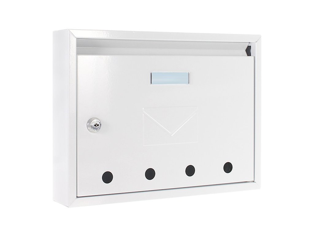 Hlavní výhody: Cylindrický zámek s 2 klíči Odolnost vůči rezivění a povětrnostním vlivům Klasický design s jmenovkou Přední vhod pro poštu Schránku lze skládat do sestav Bílá poštovní schránka z modelové řady Imola zaujme svým nadčasovým designem a detailem poštovní obálky na přední straně. Kvalitní ocelové zpracování je odolné proti povětrnostním podmínkám. Schránku tak můžete použít nejen uvnitř bytových domů nebo vnitrobloku ale i v exteriéru, např. přimontovanou na vnější stranu brány nebo plotu. Vaši jmenovku můžete umístit na připravené místo a 4 kruhové výřezy ve spodní části vás informují, ať už vaše pošta dorazila. Schránku je možné připevnit prostřednictvím předpřipravených otvorů na zadní straně. Materiál k upevnění je součástí dodávky.Doplňkové parametry