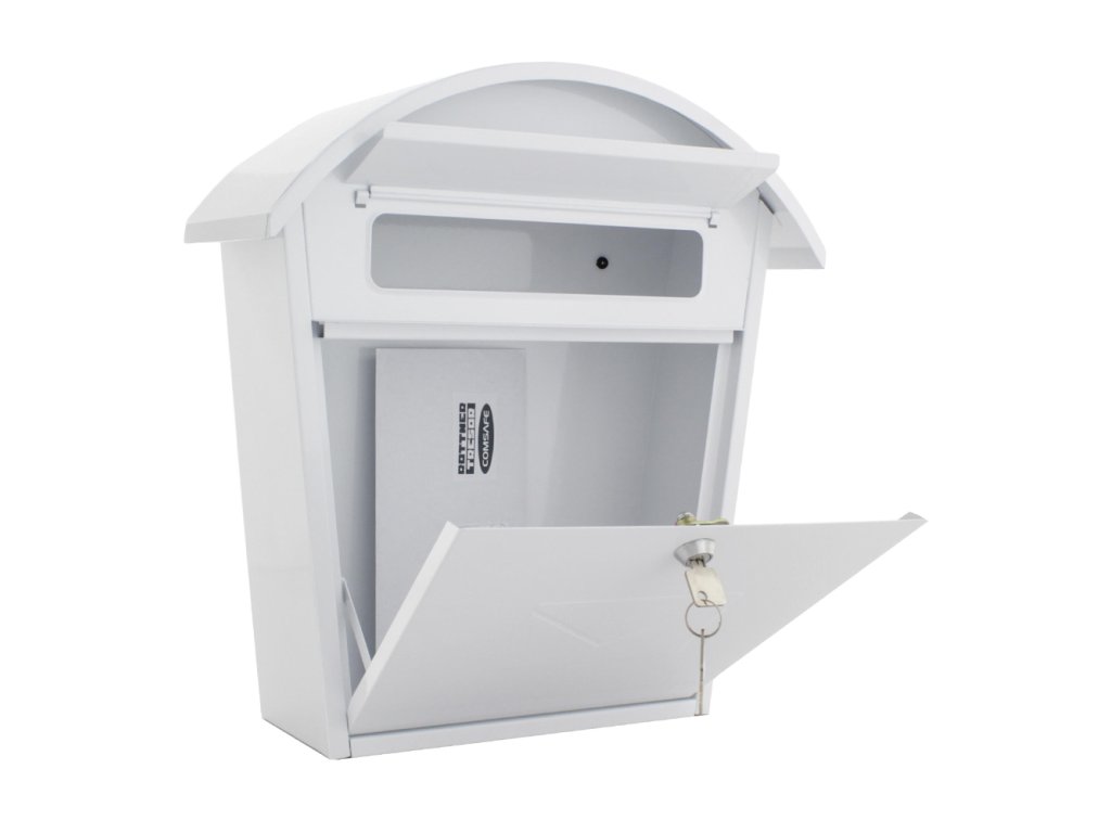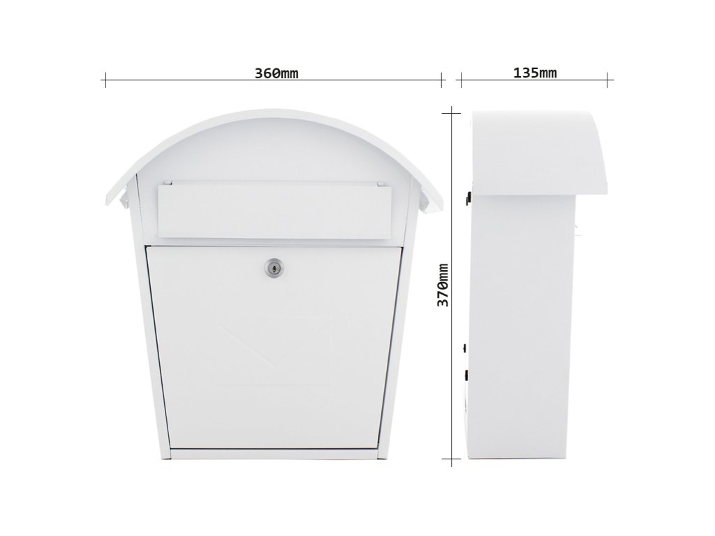 Hlavní výhody: Cylindrický zámek s 2 klíči Odolná proti povětrnostním vlivům Přední vhod pro poštu max. A4 Bez jmenovky Bílá poštovní schránka Jesolo má klasický cylindrický zámek dodávaný spolu s 2 klíči. Pozinkovaný plech odolá povětrnostním vlivům a korozi. Poštovní schránka je vybaven předním vhozem pro poštu s maximálními rozměry A4. Přední vhod je chráněn krytkou, která zamezí vnikání dešťové vody a jiných nečistot dovnitř schránka. Schránka nemá prostor na jmenovku. Na zadní straně jsou připraveny otvory pro upevnění na fasádu domu, zeď nebo plot. Poštovní schránku doručíme zabalenou v kartónové krabici.Doplňkové parametry
