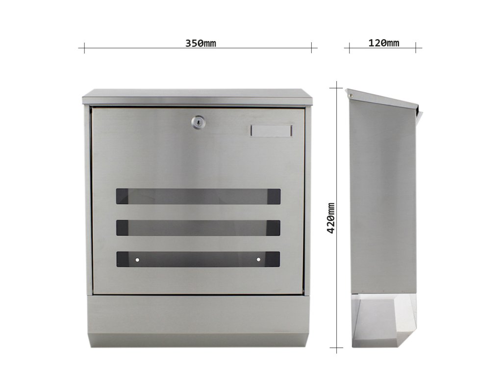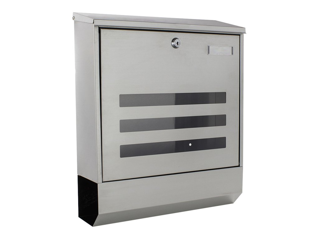 Hlavní výhody: Cylindrický zámek se 2 klíči Horní vhod pro poštu Jmenovka Samostatná část pro denní tisk Nerezová poštovní schránka z modelové řady Jubilee nabízí nadčasový design pro všechny milovníky klasických schránek na poštu. Horní vhod pro klasické poštovní zásilky je chráněn stříškou. Plnou schránku jasně uvidíte už zdaleka, protože v dolní části jsou průhledné štěrbiny, které signalizují přijatou poštu. Následně poštu vyberete přes velké dvířka a opět zavřete cylindrickým zámkem. V pravém horním rohu se nachází místo pro vaši jmenovku. Nespornou výhodou je samostatná část na noviny nebo denní tisk.Doplňkové parametry