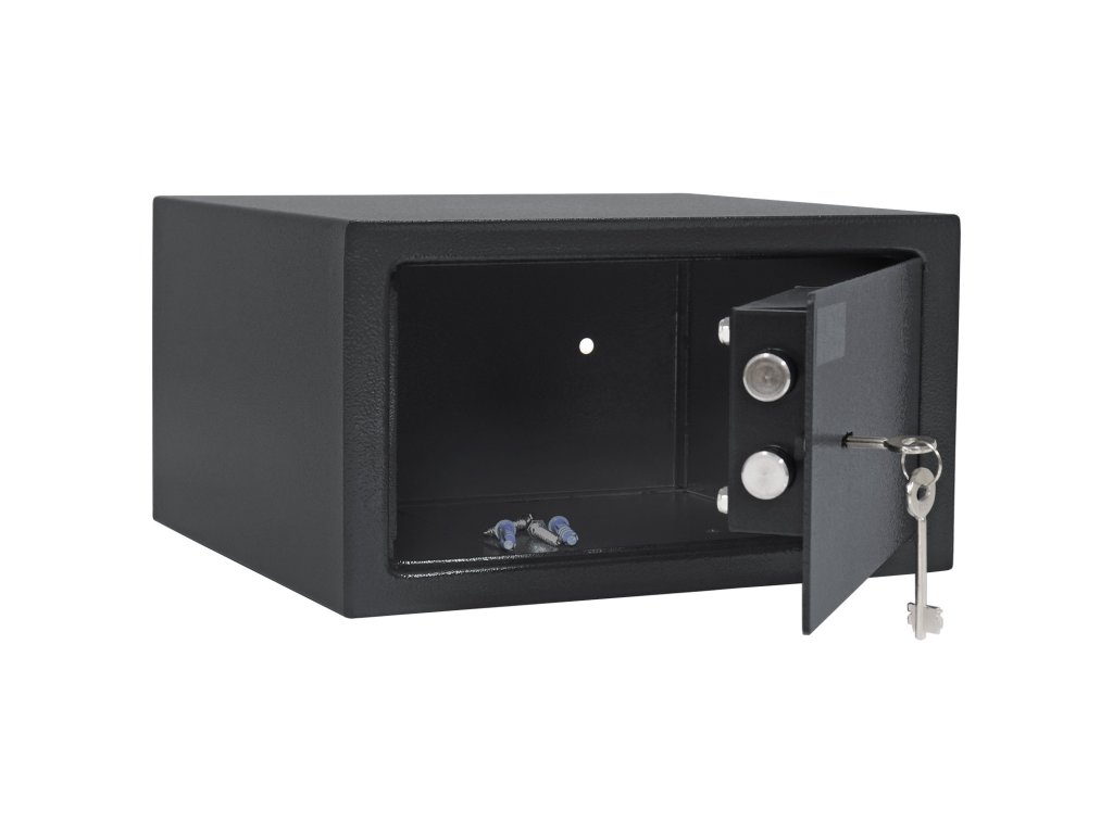 Hlavní výhody: Trezorový zámek na klíč Jednoplášťový sejf Otvory pro ukotvení na spodní i zadní straně trezoru Nábytkový sejf z modelové řady Jupiter má klasický trezorový zámek dodávaný spolu se 2 klíči. Uvnitř sejfu najdou své místo malé cennosti, doklady, hodinky nebo menší šperky. Sejf lze ukotvit prostřednictvím připravených otvorů na spodní i zadní straně. Materiál pro ukotvení je součástí balení. Pro tuto schránku na zbraně je stanoveno, že při přechovávání krátkých zbraní do počtu 2 ks nebo do 500 ks nábojů plati prohlášení o shodě.Doplňkové parametry