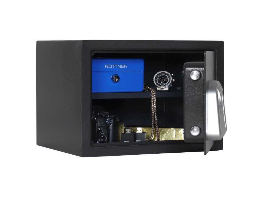 Hlavní výhody: Elektronický zámek Napájení 4 x 1,5V AA bateriemi (nejsou součástí balení) Jednoplášťový sejf 1 police vyjímatelní Nouzové mechanické otevírání Otvory pro ukotvení na spodní i zadní straně trezoru Nábytkový sejf z modelové řady Jupiter má elektronický zámek s napájením 4 x 1,5V bateriemi (nejsou součástí balení). Uvnitř sejfu najdou své místo malé cennosti, doklady, hodinky nebo menší šperky. Sejf lze ukotvit prostřednictvím připravených otvorů na spodní i zadní straně. Materiál pro ukotvení je součástí balení. Pro tuto schránku na zbraně je stanoveno, že při přechovávání krátkých zbraní do počtu 2 ks nebo do 500 ks nábojů plati prohlášení o shodě.Doplňkové parametry