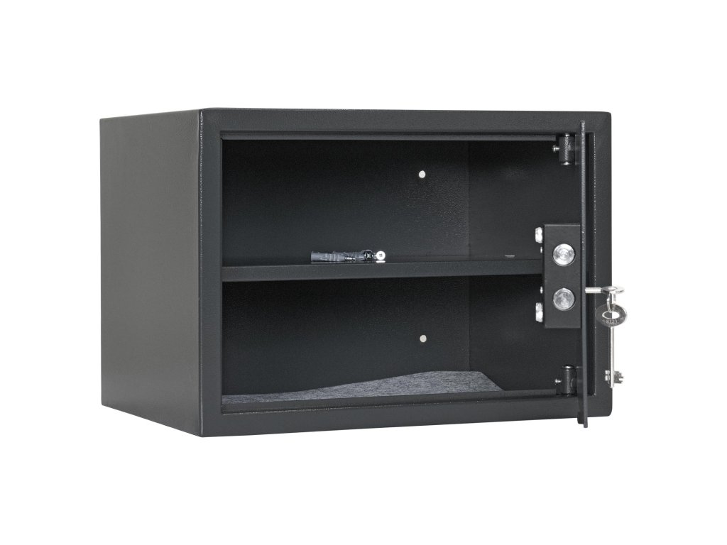 Hlavní výhody: Trezorový zámek na klíč Jednoplášťový sejf 1 police vyjímatelní Otvory pro ukotvení na spodní i zadní straně trezoru Nábytkový sejf z modelové řady Jupiter má klasický trezorový zámek dodávaný spolu se 2 klíči. Uvnitř sejfu najdou své místo malé cennosti, doklady, hodinky nebo menší šperky. Sejf lze ukotvit prostřednictvím připravených otvorů na spodní i zadní straně. Materiál pro ukotvení je součástí balení. Pro tuto schránku na zbraně je stanoveno, že při přechovávání krátkých zbraní do počtu 2 ks nebo do 500 ks nábojů plati prohlášení o shodě.Doplňkové parametry