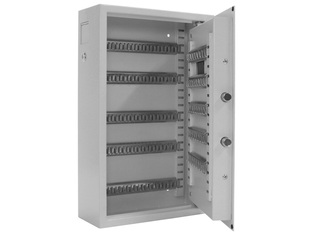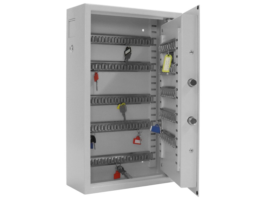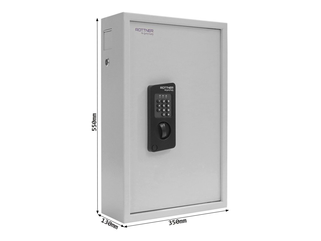 Hlavní výhody: Elektronický zámek Velká klávesnice s možností zadání až 8-místného kódu Celkově až 100 milionů kombinací Boční vhod pro vrácení klíči Celkově 100 háčků Jednoplášťové provedení Napájení 4 x 1,5 V AA bateriemi (nejsou součástí) V balení 100 barevných visačok Mechanické nouzové otevírání s 2 klíči Otvory pro upevnění na zadní straně sejfu Jednoplášťový sejf nabídne potřebné zabezpečení až pro 100 klíčů. Sejf je vyhotoven z kvalitní oceli a disponuje elektronickým zámkem s možností zadání až 8-místného kódu. Na přehledné klávesnici se snadno zadává heslo a je napájena klasickými 1,5V bateriemi. V případě, že se baterie vybijí, lze sejf otevřít pomocí mechanického nouzového otevírání. Uvnitř najdete celkem 100 háčků, které jsou fixně umístěny na výškově nastavitelných lištách. V balení kromě materiálu na upevnění najdete i barevné visačky. Kování zámku zvyšuje celkovou vnější hloubku sejfu o 15 mm.Doplňkové parametry