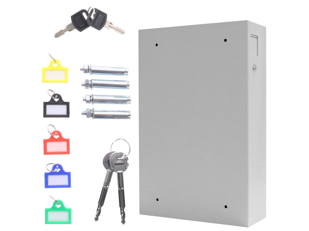 Elektronický zámek a až 8-místné heslo Fixně upevněny háčky na zavěšení klíčů Boční vhod pro vrácení klíči Napájení 4 x 1,5 AA bateriemi (nejsou v balení) Spolu s 48 visačkami na klíče