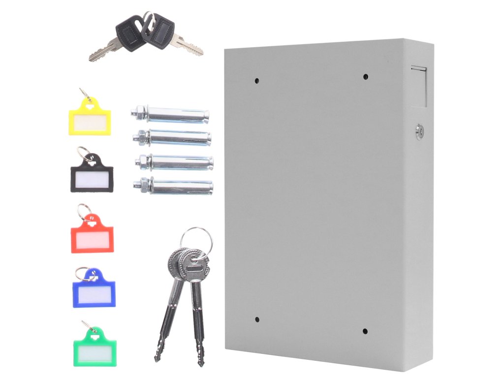 Elektronický zámek a až 8-místný kód Fixně upevněny háčky na zavěšení klíčů Boční vhod pro vrácení klíči Napájení 4 x 1,5 AA bateriemi (nejsou v balení) Spolu s 48 visačkami na klíče