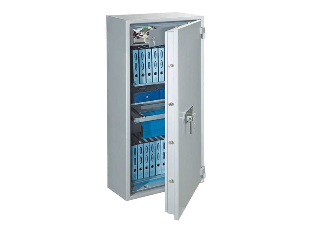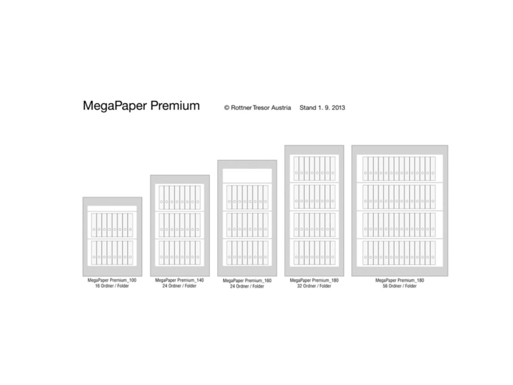 Hlavní výhody: Certifikovaný trezorový zámek Bezpečnostní třída I (ČSN EN 1143-1) Ohnivzdornost po dobu 120 minut pro papír 4-stranný uzamykací mechanizmus 3 poličky uvnitř Otevírání dveří do 180° Možnost doobjednání teleskopické registratury Možnost doobjednání teleskopické zásuvky Možnost doobjednání teleskopické police Možnost doobjednání vnitřního sejfu Otvory na ukotvení na spodní straně trezoru Bílý nábytkový trezor z modelové řady Mega Paper Premium disponuje certifikovaným trezorovým zámkem, který dodáváme spolu s 2 klíči. Provedení trezoru je víceplášťové, přičemž trezor má i certifikát bezpečnostní třídy I (ČSN EN 1143-1). Trezor Mega Paper 160 Premium je ohnivzdorný, a to až po dobu 120 minut pro papírové dokumenty. Stěny a dveře trezoru jsou vyplněny speciální směsí, aby trezor odolal vysokým teplotám. Uvnitř trezoru se nacházejí 3 poličky a dveře se uzavřou 4-stranným uzamykacím mechanismem. V případě potřeby je možné za doplatek doobjednat doplňkovou výbavu. Spodní strana trezoru má připravené otvory pro ukotvení. Materiál na ukotvení je součástí balení. Kování zámku zvyšuje celkovou vnější hloubku trezoru o 60 mm.Doplňkové parametry