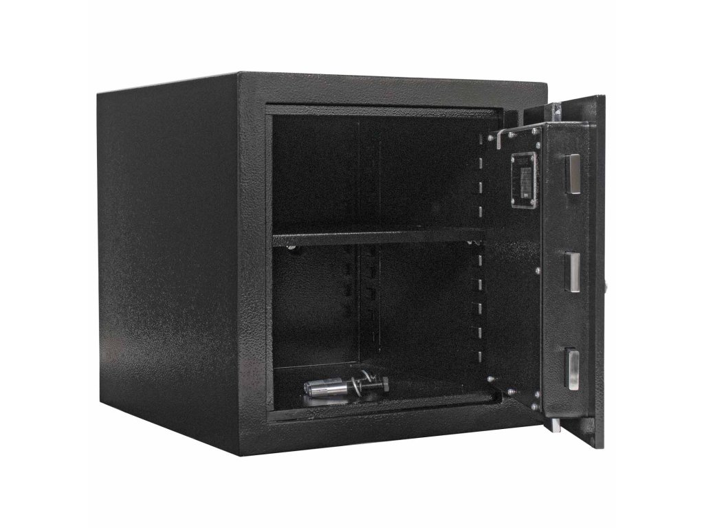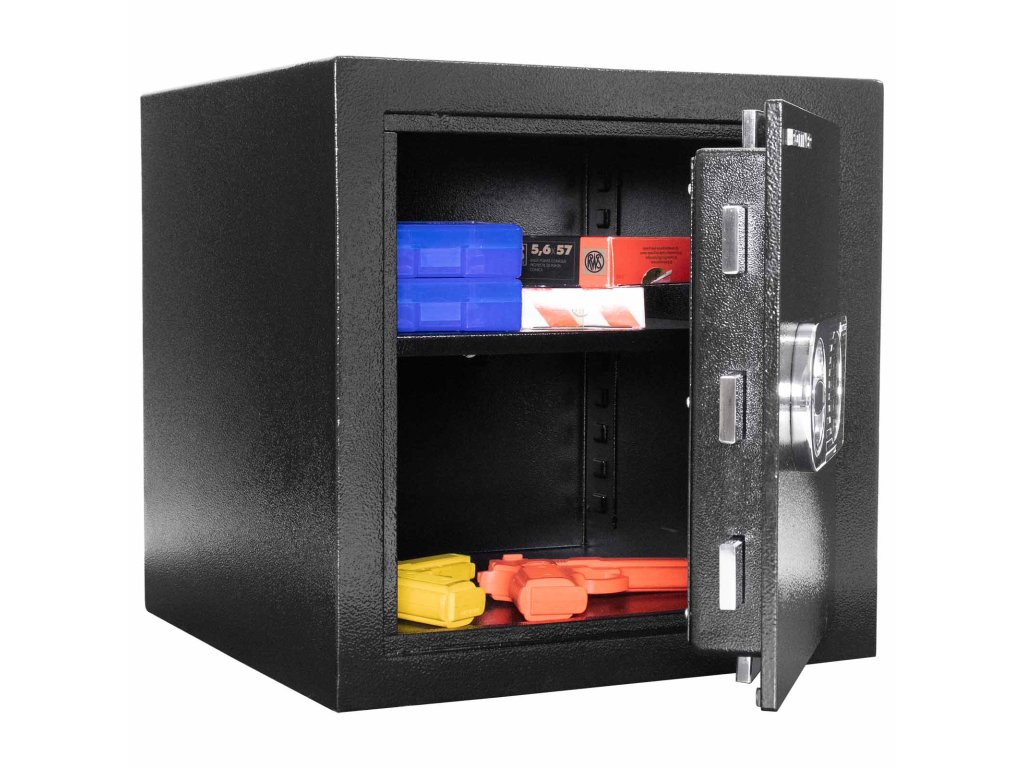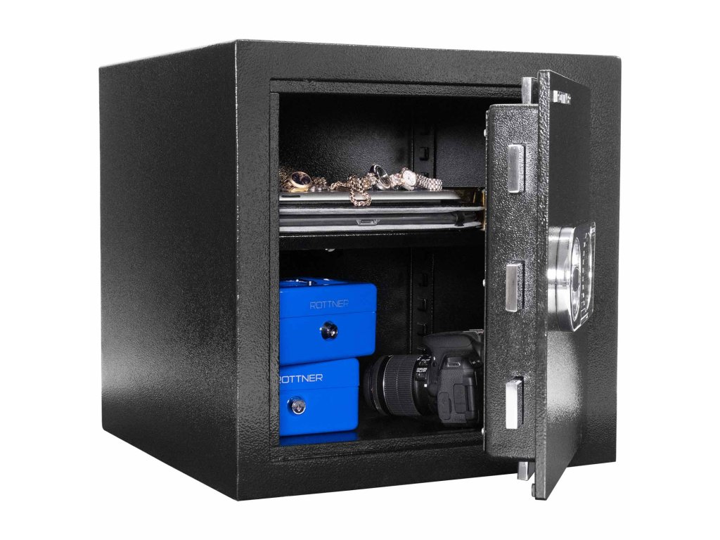 Certifikovaný elektronický zámek Bezpečnostní třída I (ČSN EN 1143-1) Napájení 1 x 9V baterií (není součástí balení) Polička uvnitř