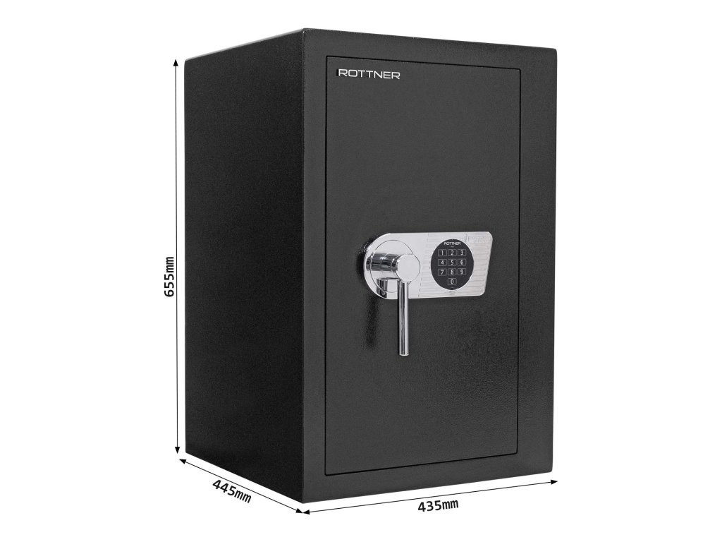 Certifikovaný elektronický zámek Bezpečnostní třída I (ČSN EN 1143-1) Napájení 1 x 9V baterií (není součástí balení) Polička uvnitř