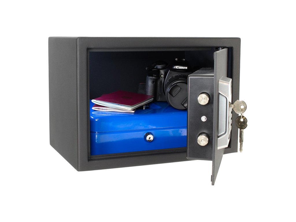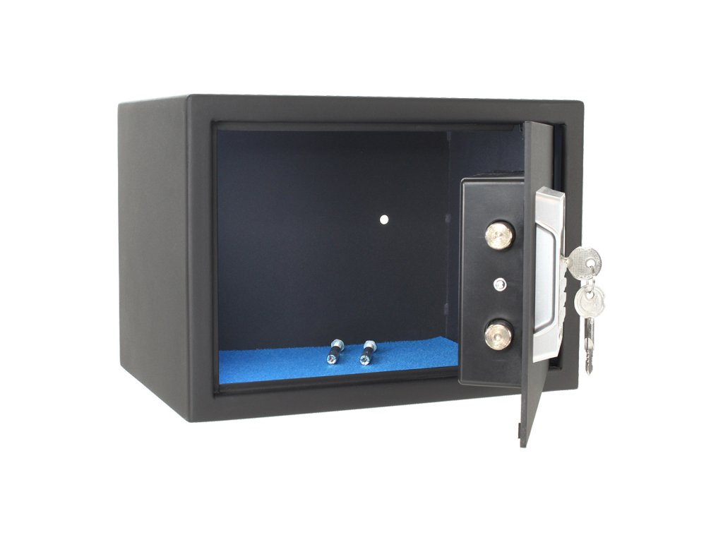 Hlavní výhody: Elektronický zámek Zámek se sjednoceným klíčem pro nouzové otevírání Možnost nastavení 2 kódů, hlavní a vedlejší (tzv. master a user kód) Napájení 4 x 1,5V AA bateriemi (nejsou součástí balení) Otvory na ukotvení na spodní a zadní straně sejfu Nábytkový sejf Neptun 1 se sjednoceným zámkem nabízí skvělé řešení v případě potřeby více sejfů. Sejf má elektronický zámek s možností nastavení 2 kódů. Zámek je napájen klasickými 1,5V AA bateriemi. Po zadání správného hesla se dveře automaticky zavřou nebo otevřou, bez potřeby vaší pomoci. Jednoplášťové provedení má tloušťku stěn 2 mm a tloušťku dveří 4 mm. Připravené otvory na zadní a spodní straně sejfu umožňují snadné ukotvení. Kotvící materiál je součástí balení. Pro objednání sejfu se sjednoceným klíčem je nutno objednat 2 a více stejných sejfů. Kování zámku zvyšuje celkovou vnější hloubku sejfu o 20 mm.Doplňkové parametry