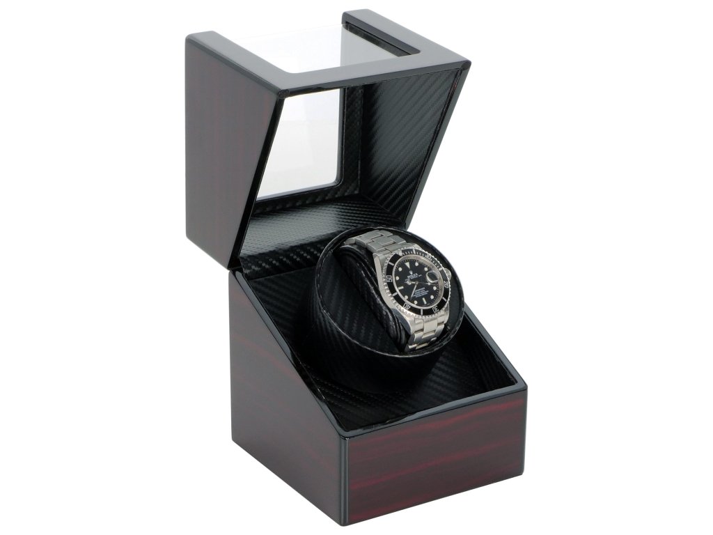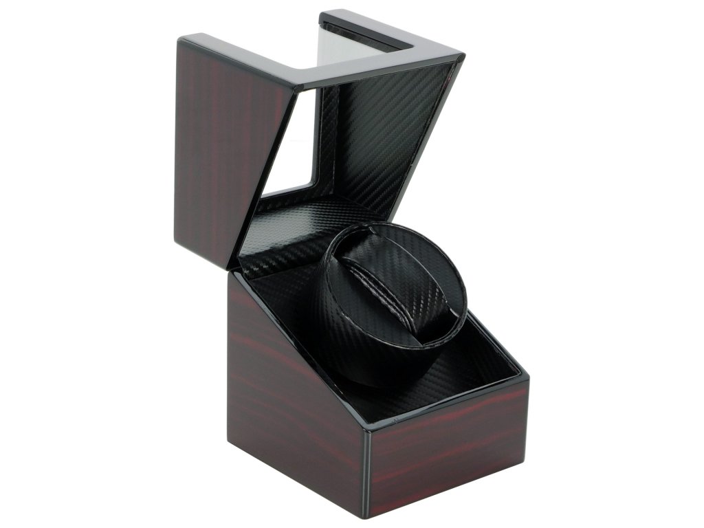 Hlavní výhody: Pro 1 automatické hodinky Napájení baterkami nebo napájecím kabelem Elegantní tmavé dřevo a skleněné okénko Čistící hadřík v balení Elegantní natahovač hodinek udrží automatické hodinky v chodu. Natahovač je určen pro 1 automatické hodinky. Vyroben je z elegantního tmavého dřeva s prosklenou horní částí. Napájet natahovač lze prostřednictvím přiloženého napájecího kabelu nebo 2 x 1,5V AAA bateriemi. Spolu s natahovačem obdržíte i praktický hadřík na čištění. Uvnitř trezoru lze natahovač provozovat pouze v režimu na baterie, nelze použít napájecí kabel.Doplňkové parametry