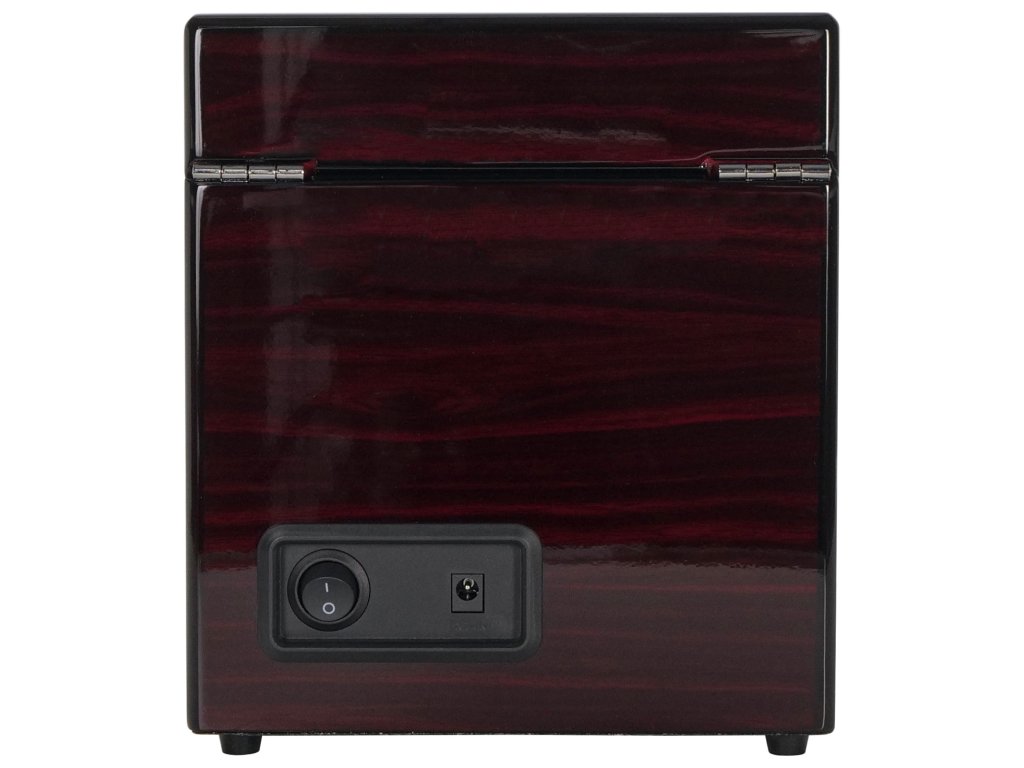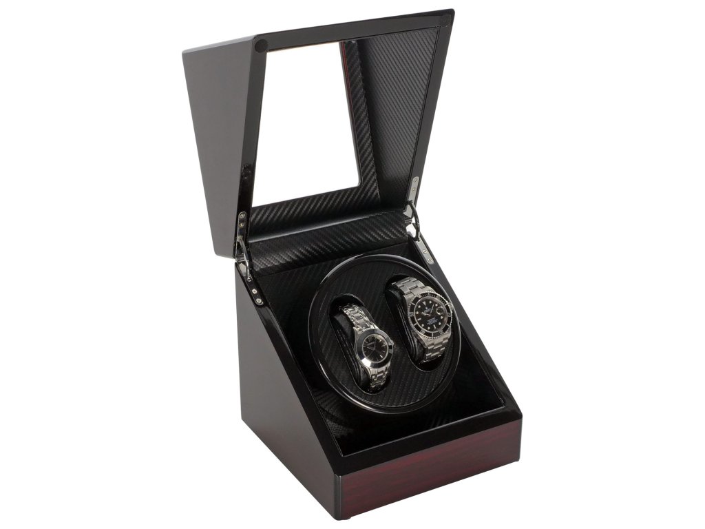 Hlavní výhody: Pro 2 automatické hodinky Napájení baterkami nebo napájecím kabelem Elegantní tmavé dřevo a skleněné okénko Čistící hadřík v balení Elegantní natahovač hodinek udrží automatické hodinky v chodu. Natahovač je určen pro 2 automatické hodinky. Vyroben je z elegantního tmavého dřeva s prosklenou horní částí. Napájet natahovač lze prostřednictvím přiloženého napájecího kabelu nebo 2 x 1,5V AAA bateriemi. Spolu s natahovačem obdržíte i praktický hadřík na čištění. Uvnitř trezoru lze natahovač provozovat pouze v režimu na baterie, nelze použít napájecí kabel.Doplňkové parametry