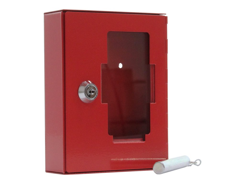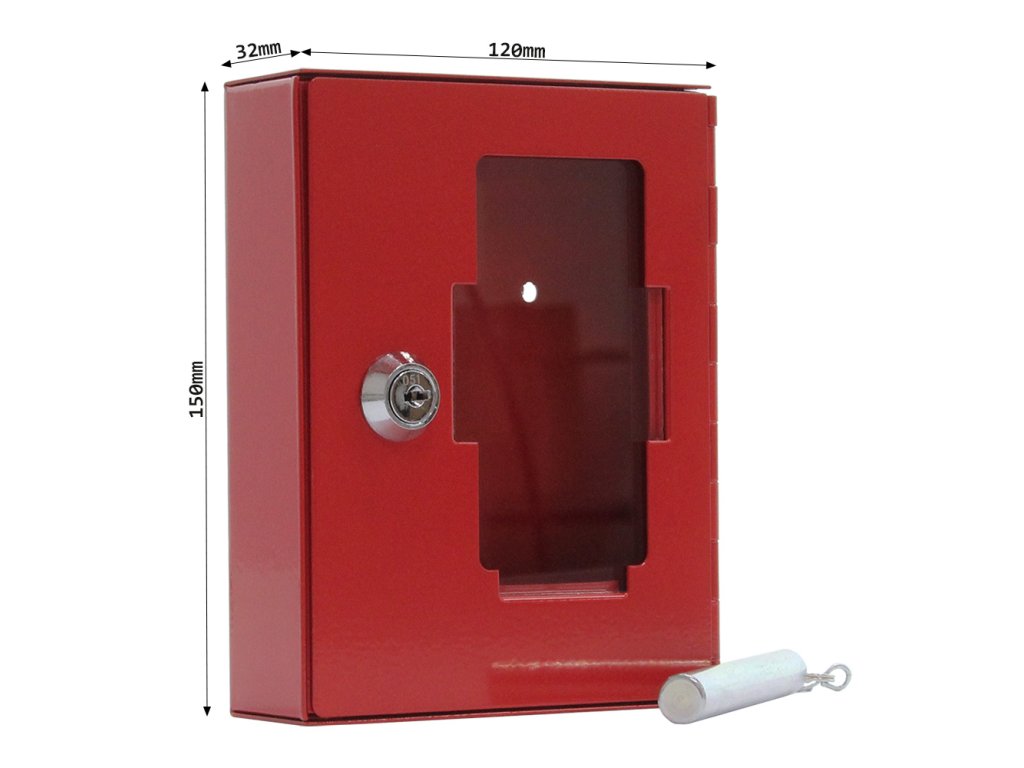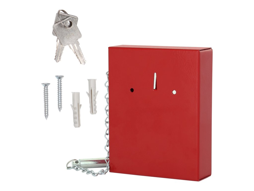 Hlavní výhody: Cylindrický zámek s 2 klíči Sklo je možné v případě nouze rozbít Uvnitř 1 háček na zavěšení Dodávané s kladívkem Červená skříňka na nouzový klíč pro jasné a viditelné označení a uschování důležitého klíče nebo menšího svazku klíčů. Jednoduché a funkční provedení zaručí, že v případě potřeby je možné sklo rozbít pomocí připevněného kladívka. Skříňku snadno připevníte na stěnu díky přibalenému materiálu na ukotvení.Doplňkové parametry